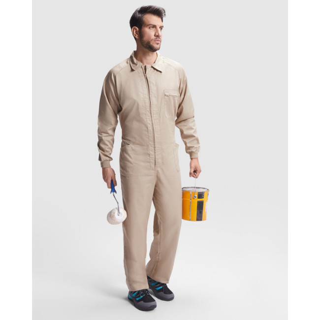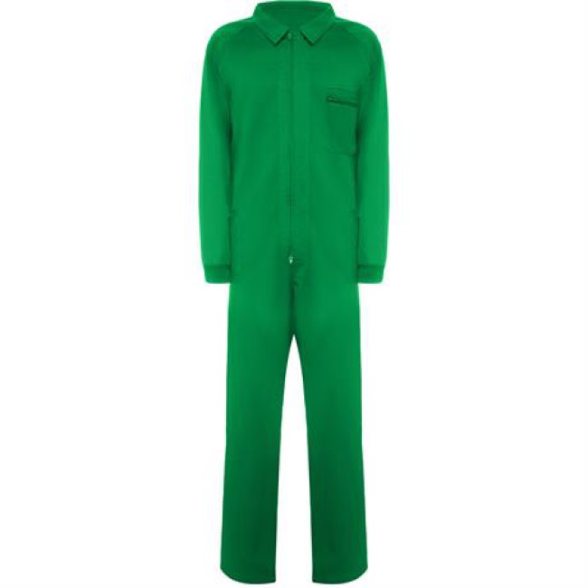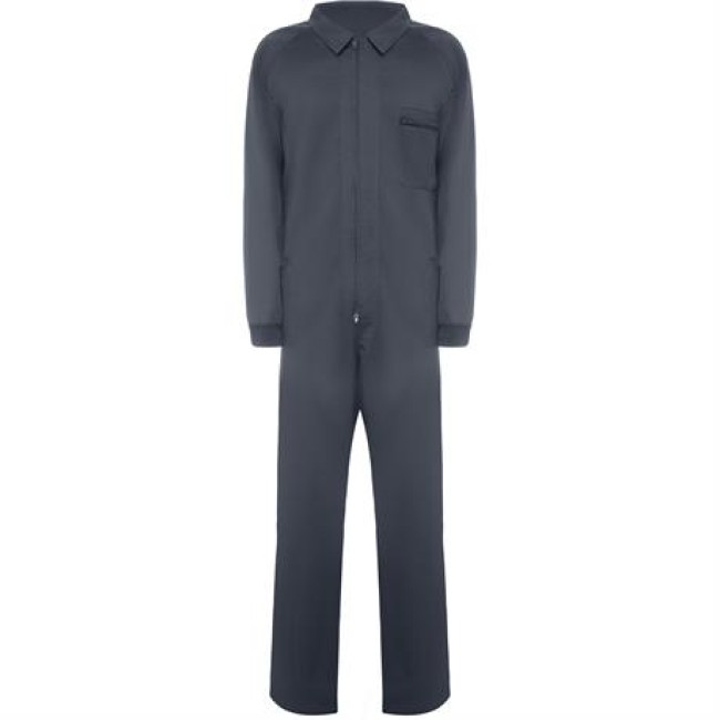 Tuta dritta.· Cerniera centrale.· Una tasca sul petto a sinistra con cerniera.· Due tasche laterali.· Una tasca laterale stretta.· Polsini elastici con gomma 1x1.