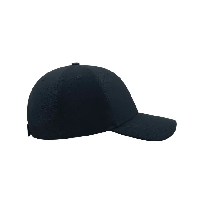 100% cotone chino. 6 pannelli, occhielli ricamati, pannello frontale rinforzato, visiera pre-curvata, chiusura in velcro, 4 cuciture su visiera, parasudore in cotone, etichetta removibile.