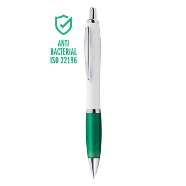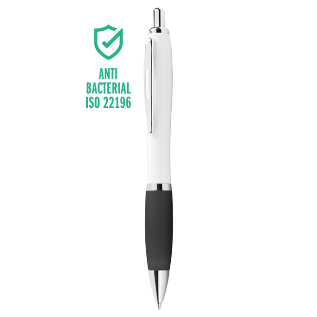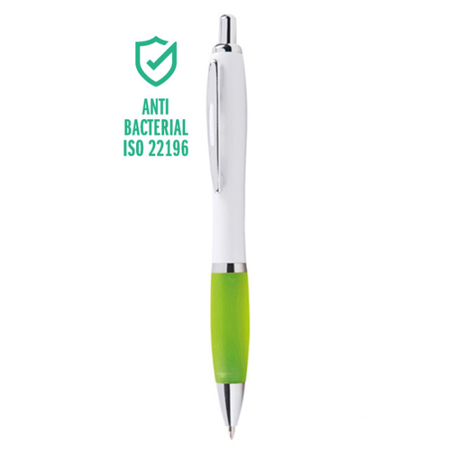 penna a sfera meccanismo a scatto corpo in plastica bianca grip colorata in gomma minuterie in metallo cromato refill jumbo con sfera al tungsteno inchiostro nero tecnica di stampa consigliata: tampografica - UV