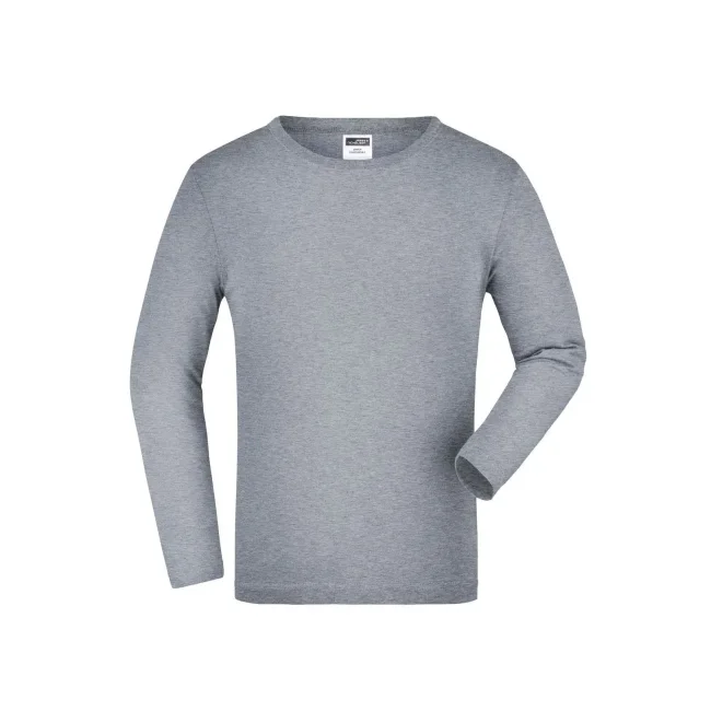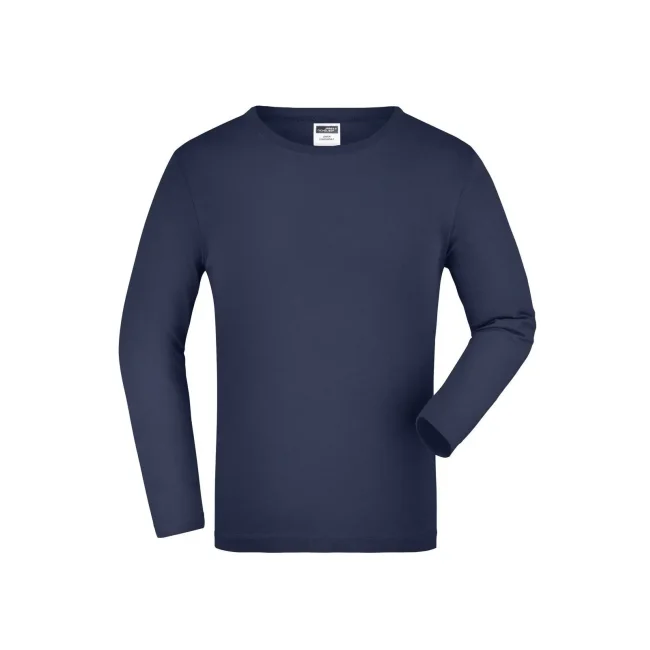 100% cotone. T-shirt manica lunga in single Jersey JN913: Taglio diritto senza cuciture laterali, 1 x 1 girocollo e necktape a costine, Scollo tondo con elastan, cucitura laterale e cuciture a doppio filo sul collo Tessuto esterno (150 g/m²): Bambini, Manica lunga.