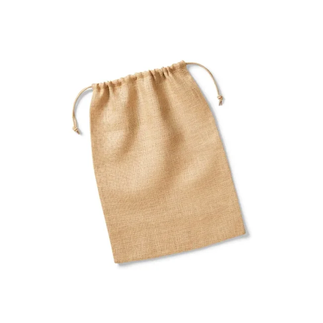 100% Juta. Sacca con chiusura a coulisse con doppio laccio. Etichetta removibile. Dimensioni: XXS: 10x15 cm, cap. 0,25 lt. - XS: 14x20 cm, cap. 1 lt. - S: 25x30 cm, cap. 3 lt. - M: 30x45 cm, cap. 8 lt. - L: 40x55 cm, cap. 15 lt. - XL: 55x75 cm, cap. 40 lt.