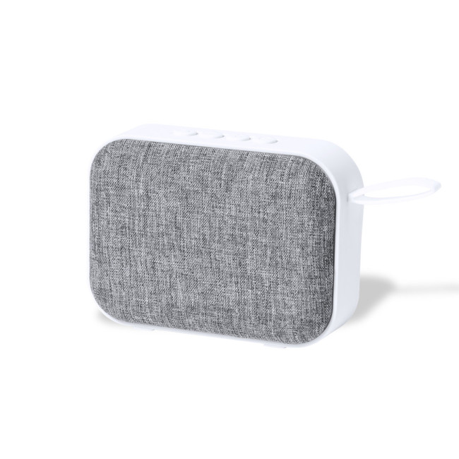 Altoparlante di connessione Bluetooth® 5.0 bicolore, con griglia in poliestere e maniglia di trasporto in silicone coordinata. Offre 3 W di potenza, ha una funzione vivavoce e una funzione radio FM. Gioca tramite USB, slot per schede micro SD fino a 32 GB di capacità e ingresso di linea ausiliario tramite connessione jack da 3,5 mm, con base antiscivolo. Compatibile con iOS e Android, include un cavo di ricarica micro USB ed è disponibile anche in una vasta gamma di colori. Presentato in una scatola dal design accattivante.