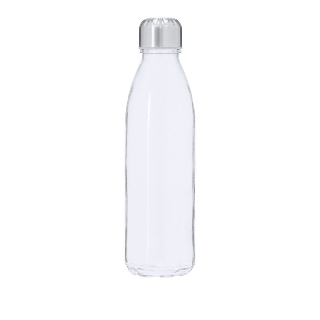 Bottiglia in Vetro Riciclato da 650 ml di capacità e tappo in acciaio inox, privo di BPA. Include distintivo di Vetro Riciclato.