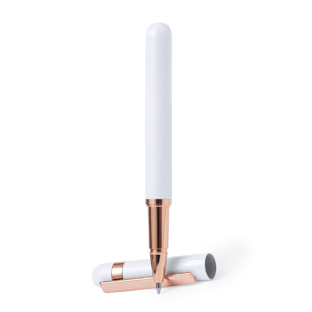 Elegante roller appositamente progettato per la marcatura laser con logo rosa. Con clip in metallo e dettagli in plastica con finitura rosa. Con cartuccia jumbo, inchiostro blu e chiusura a cappuccio. Disponibile in due colori distintivi.Presentato in un'elegante scatola nera di design.