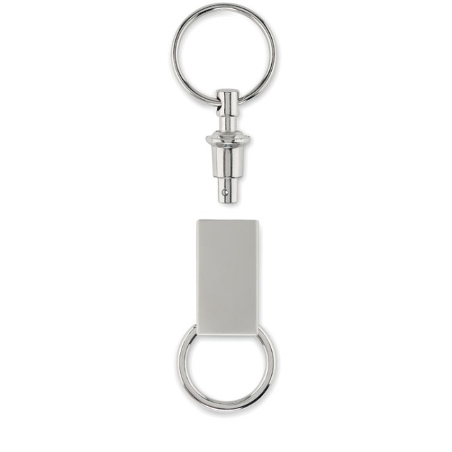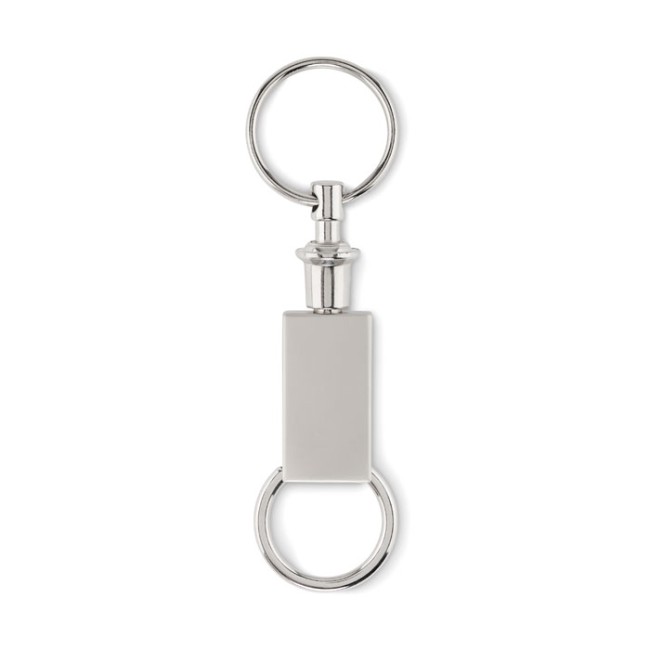 Portachiavi 2 in 1 in lega di zinco. Estraendo il portachiavi si ottengono 2 portachiavi.
