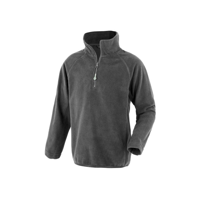 100% poliestere riciclato. Pile da bambino mezza zip, con zip YKK NATULON Eco-Friendly, orlo e polsini elasticizzati, cuciture decorative, facile da lavare, asciugatura rapida, PFC free.
