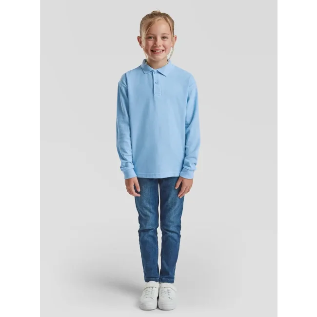 65% poliestere Easy-care, 35% cotone. Polo maniche lunghe set-in, 2 bottoni tono su tono, polsino in costina con elastane, struttura con cuciture laterali. (Col. 30: 170 g/m²).