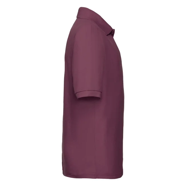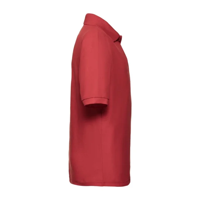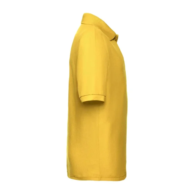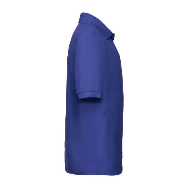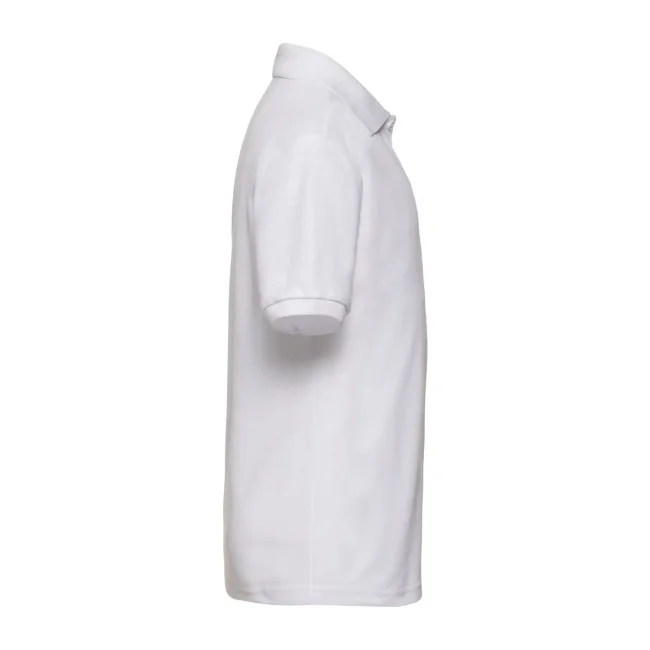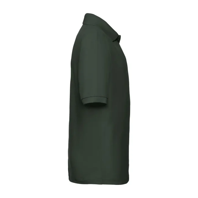 65% poliestere, 35% cotone. Polo maniche corte set-in, chiusura a due bottoni tono su tono, cucitura rinforzata su spalle e collo con fettuccia interna, struttura con cuciture laterali. (Col. 30: 170 g/m²).