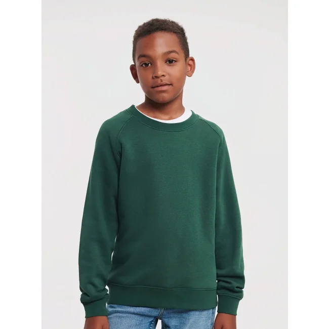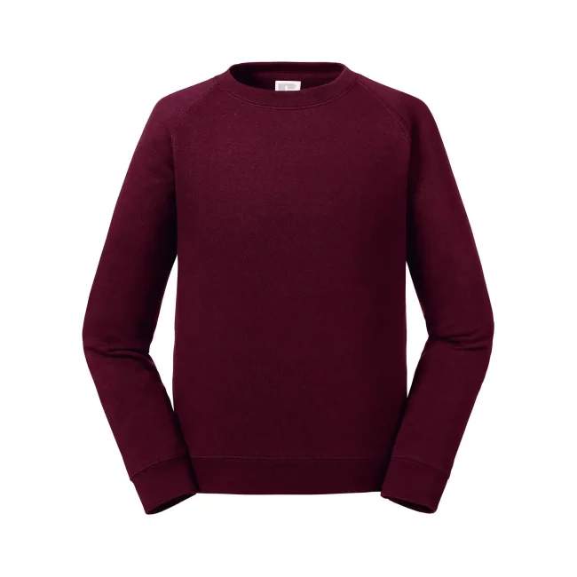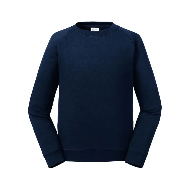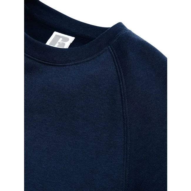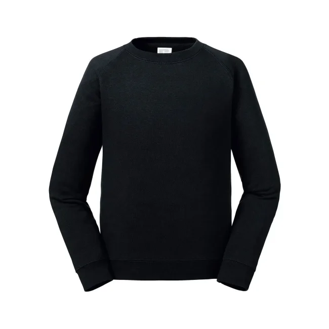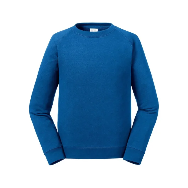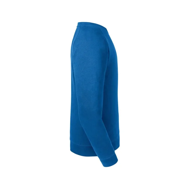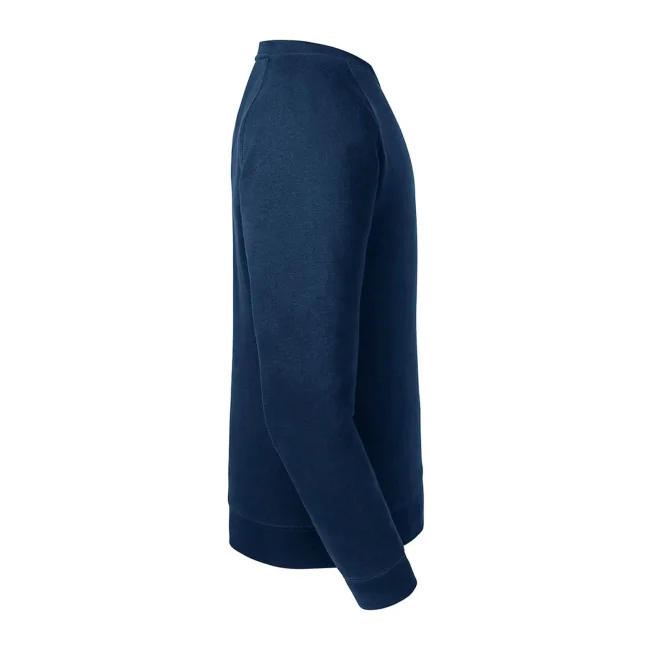 80% cotone ring spun pettinato, 20% poliestere. Tessuto esterno cotone 100% (tessuto a 3 strati). Felpa girocollo con manica raglan,taglio sciancrato, orlo e polsini più ampi in costina 1x1, nastrino di rinforzo sul collo.