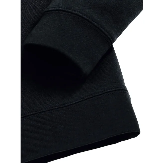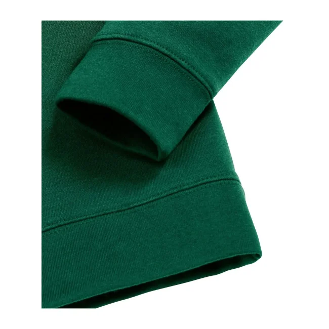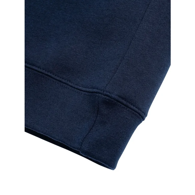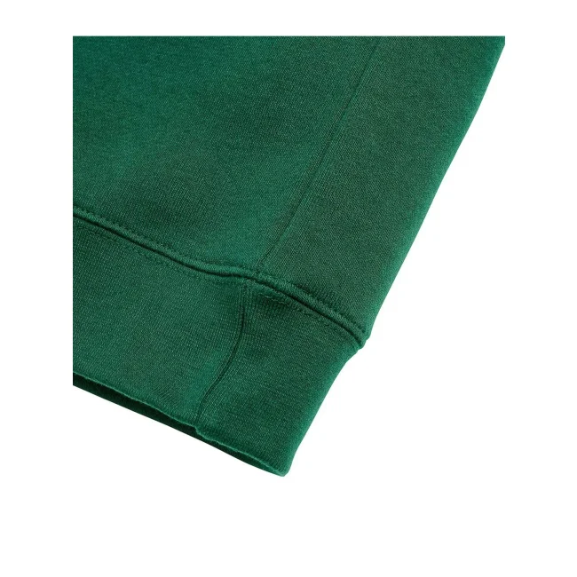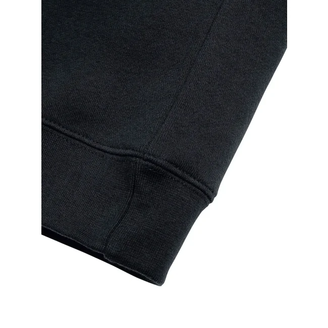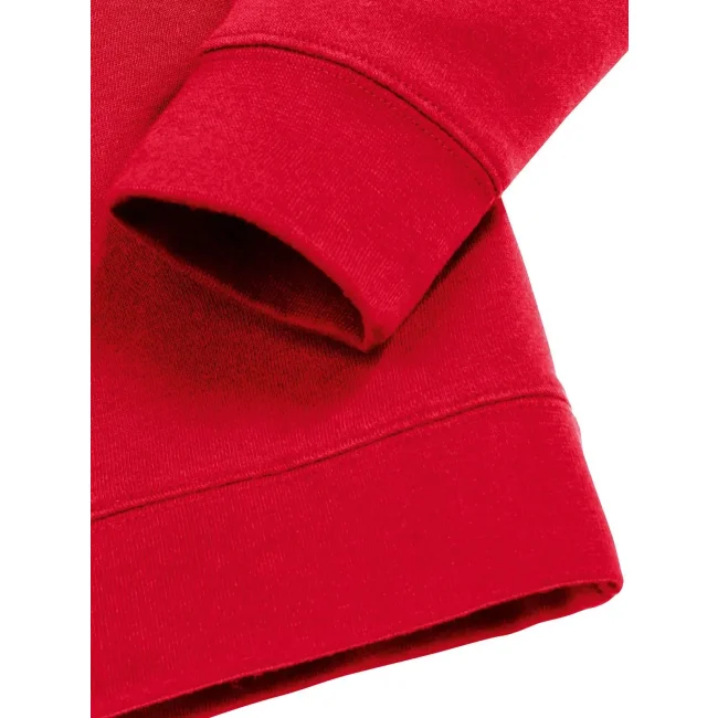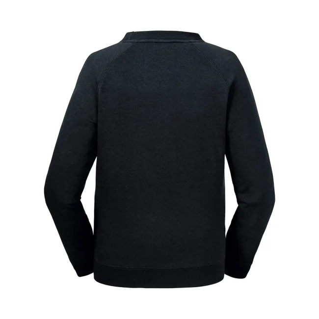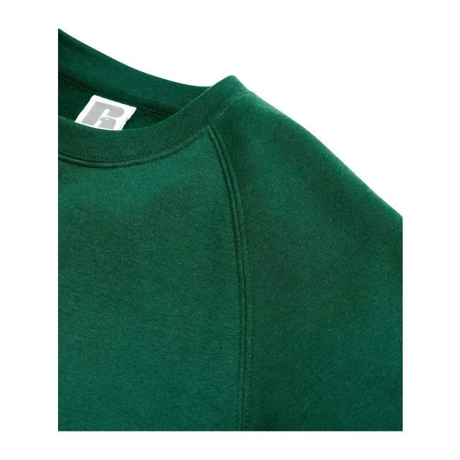 80% cotone ring spun pettinato, 20% poliestere. Tessuto esterno cotone 100% (tessuto a 3 strati). Felpa girocollo con manica raglan,taglio sciancrato, orlo e polsini più ampi in costina 1x1, nastrino di rinforzo sul collo.