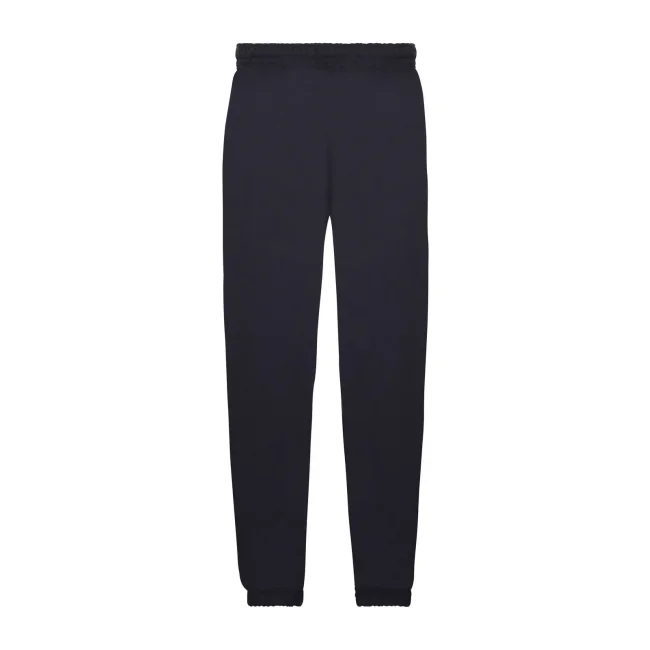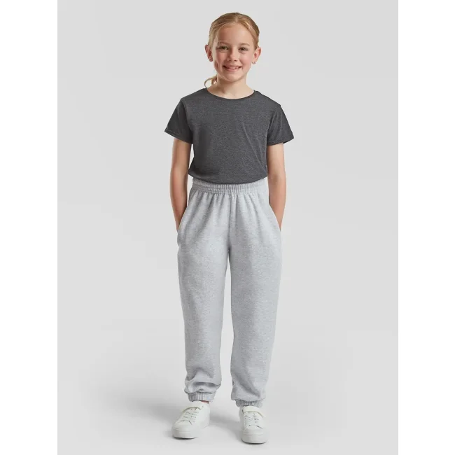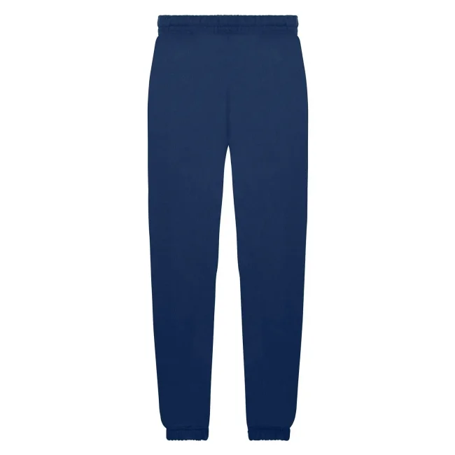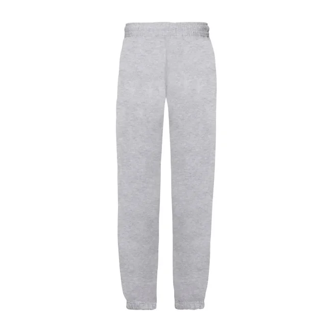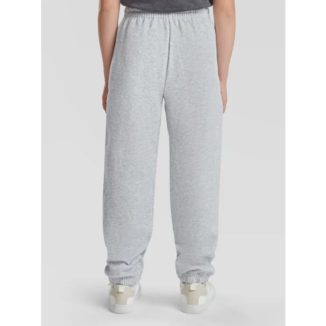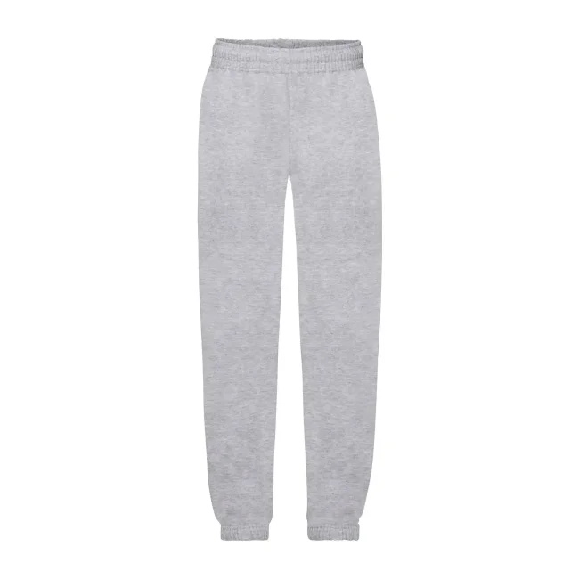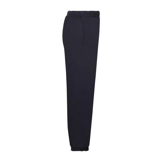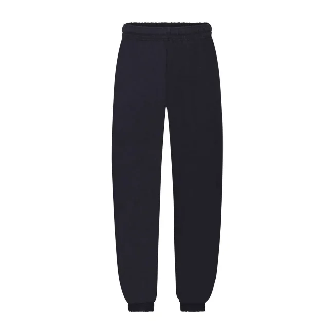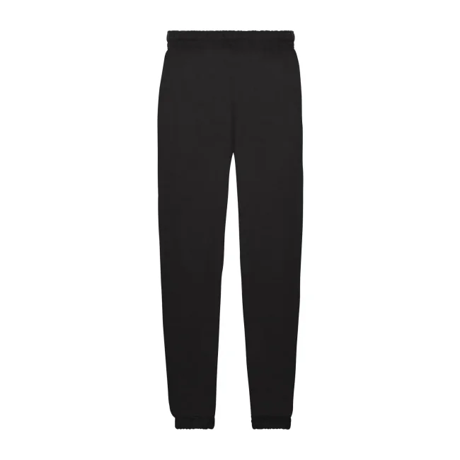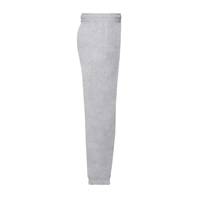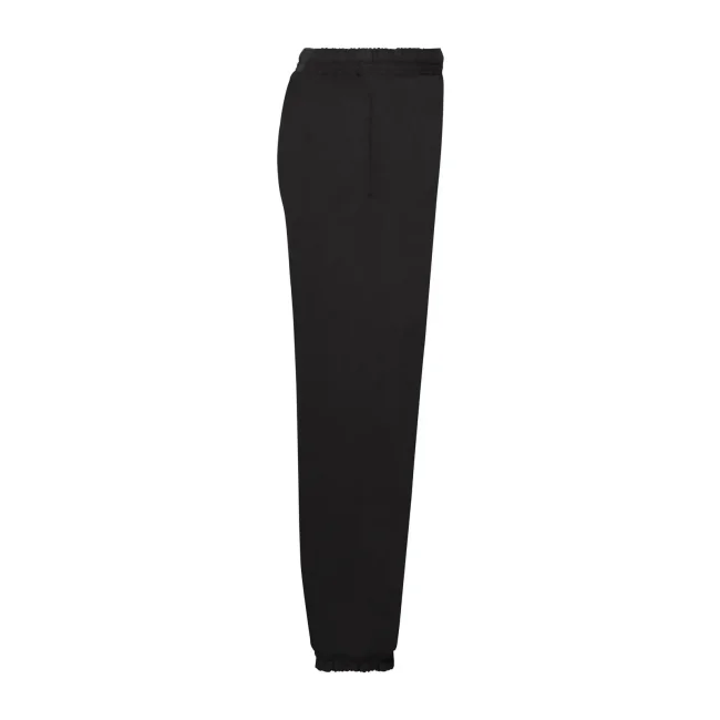 80% cotone, 20% poliestere. Pantaloni con elastico in vita e cordoncino, due tasche laterali, elastico alla caviglia, felpati internamente. Etichetta removibile. (Col. 94: 260 g/m²).