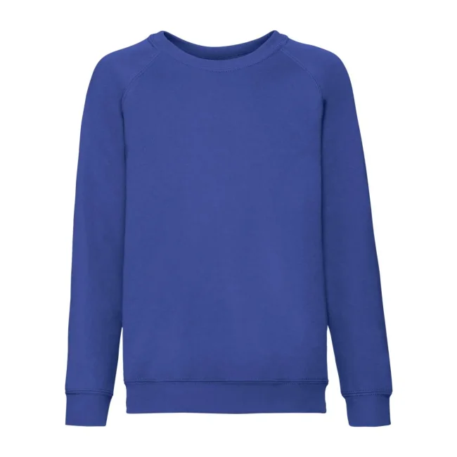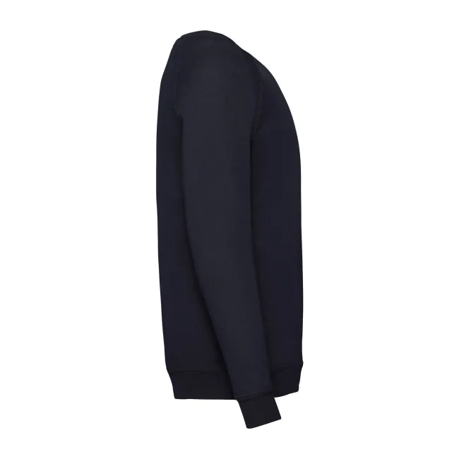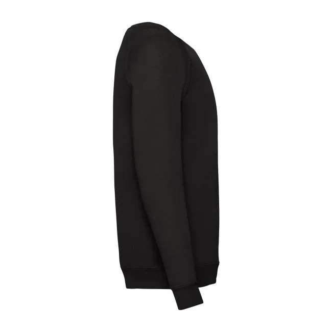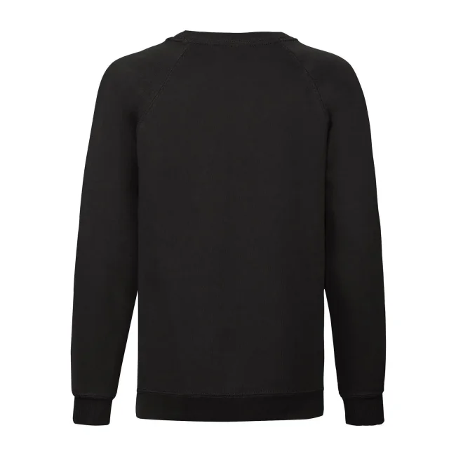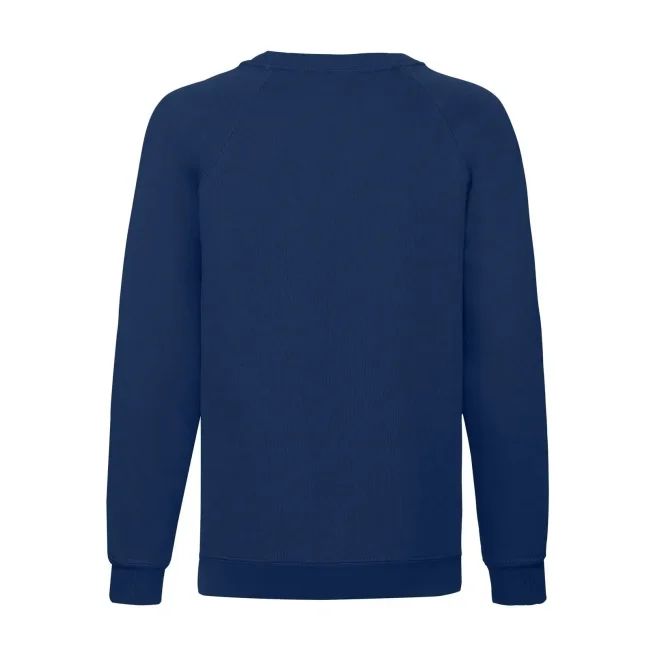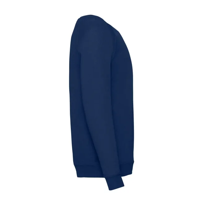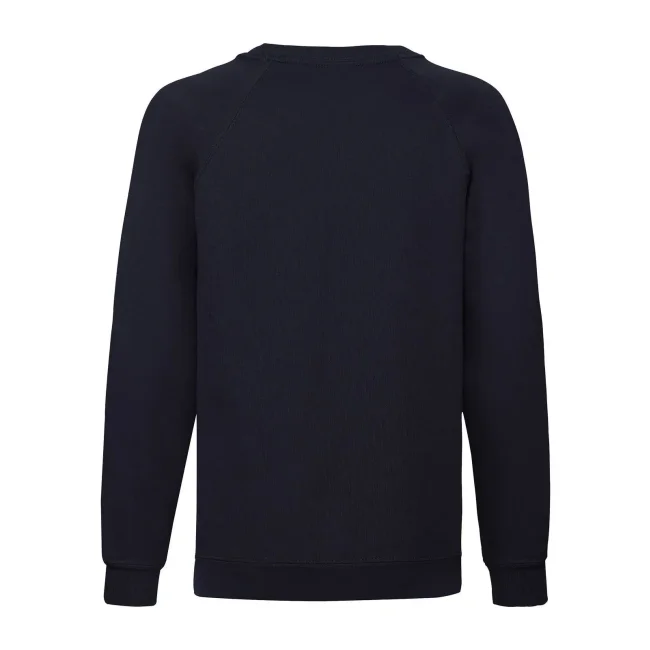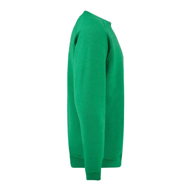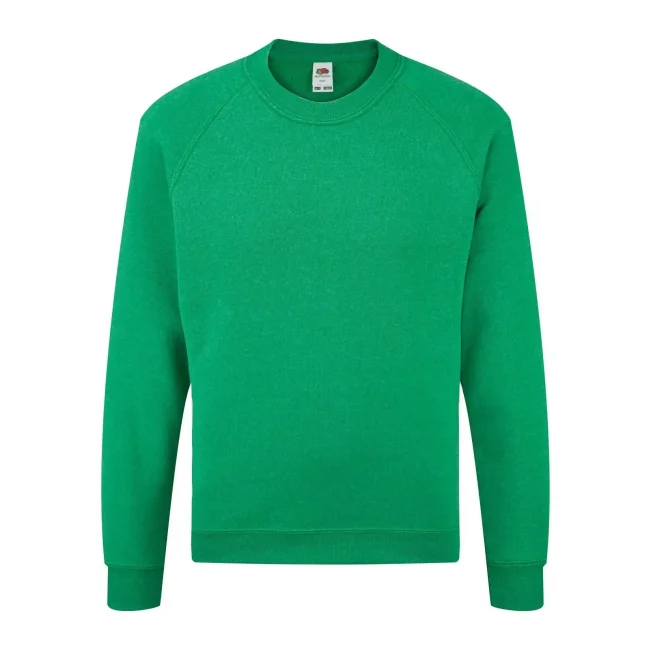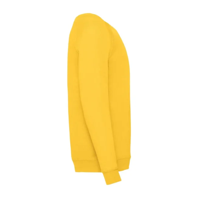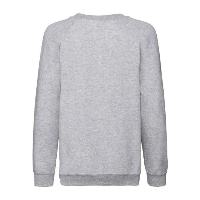 80% cotone, 20% poliestere. Felpa con maniche reglan, collo in costina cotone/lycra, nastro al collo in tinta, felpata internamente, struttura con busto tubolare. Etichetta removibile. (Col. 94: 260 g/m²).