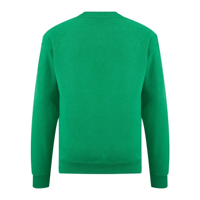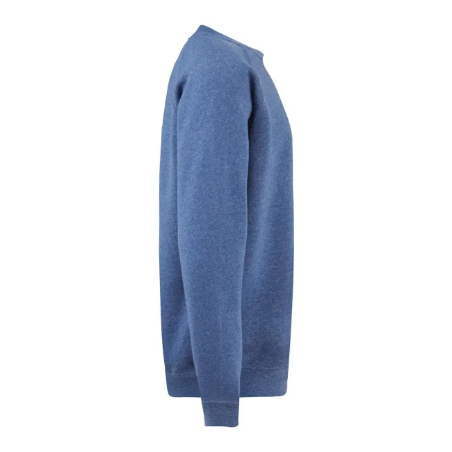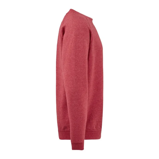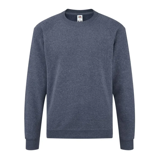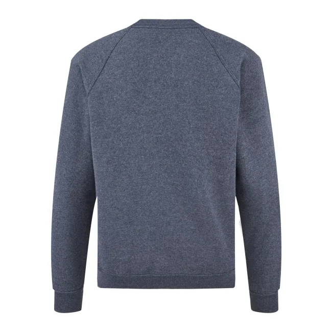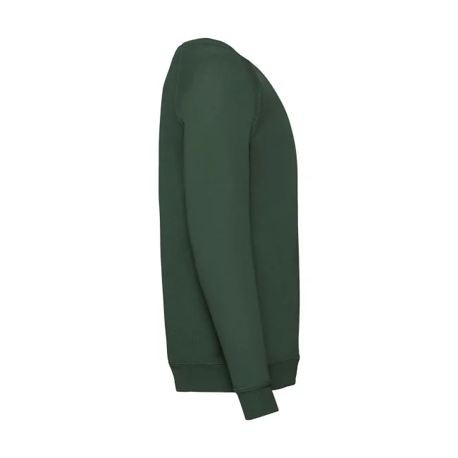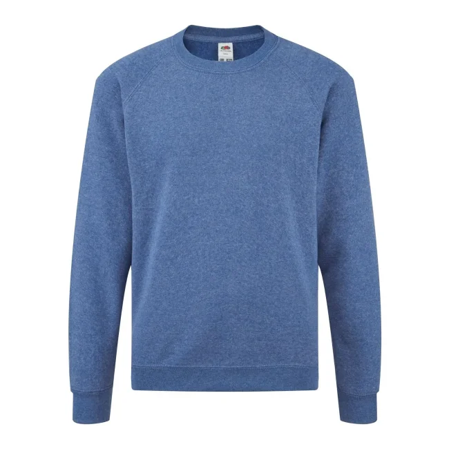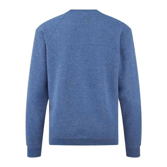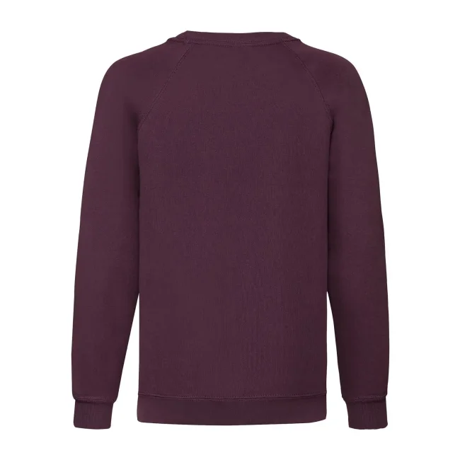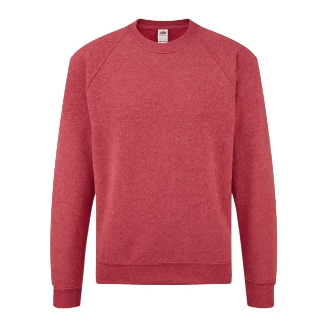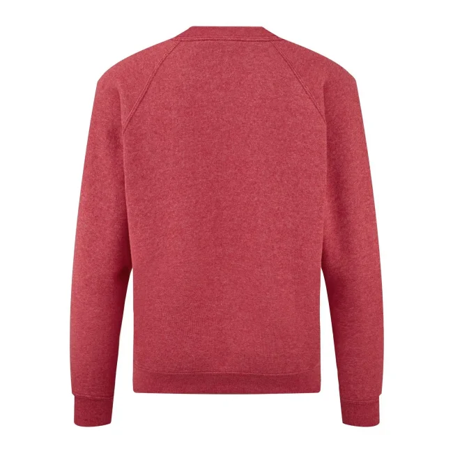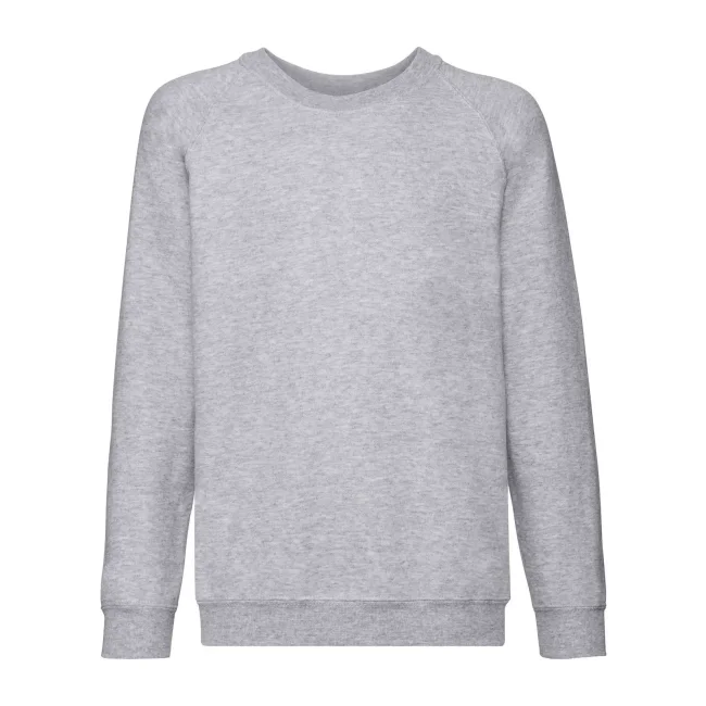 80% cotone, 20% poliestere. Felpa con maniche reglan, collo in costina cotone/lycra, nastro al collo in tinta, felpata internamente, struttura con busto tubolare. Etichetta removibile. (Col. 94: 260 g/m²).