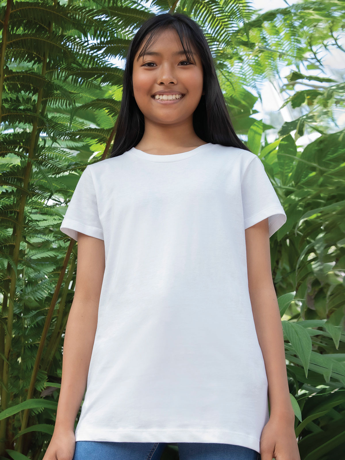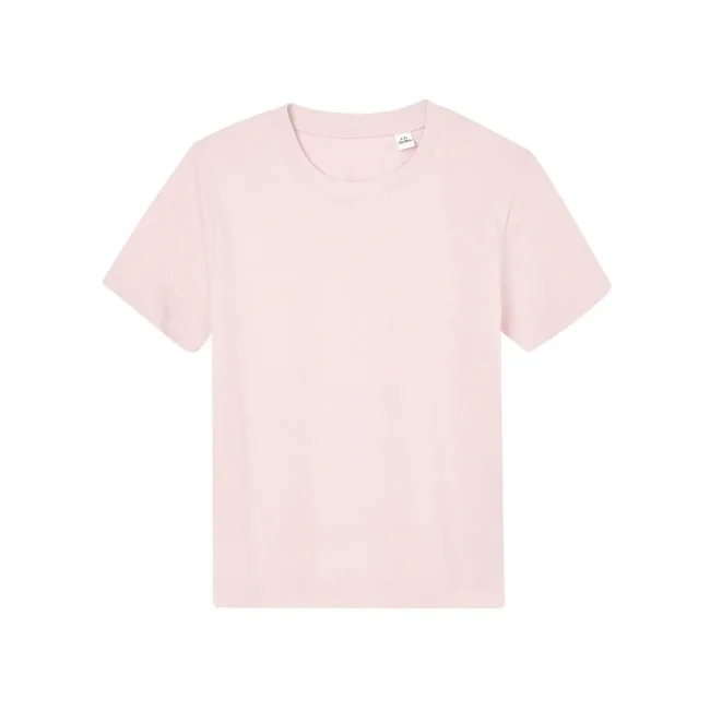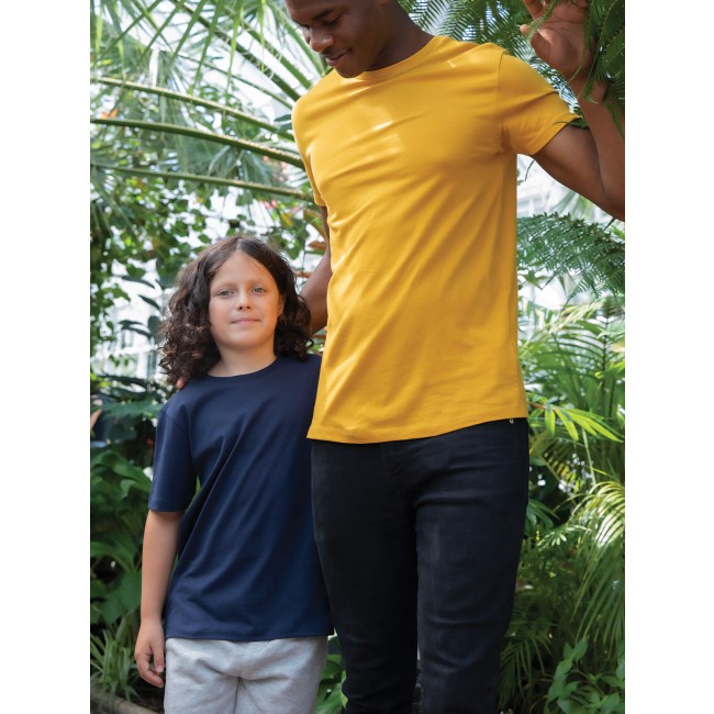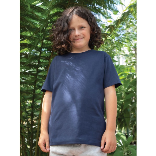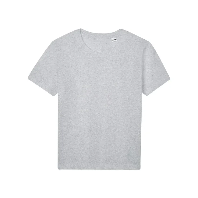 100% cotone (organico o in conversione), 160 g/m2. T-shirt da bambino vestibilità unisex, girocollo a costine, orlo con cuciture doppie. Etichetta taglia removibile sul collo. Etichetta con istruzioni di lavaggio in cotone organico.