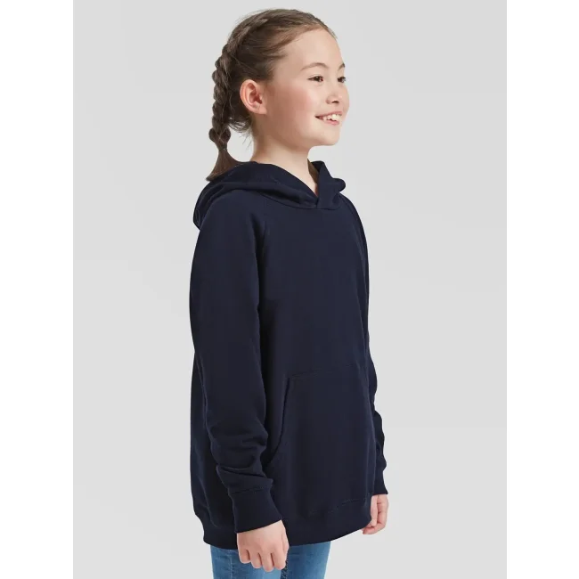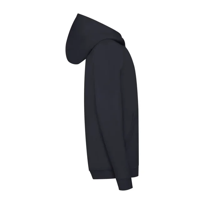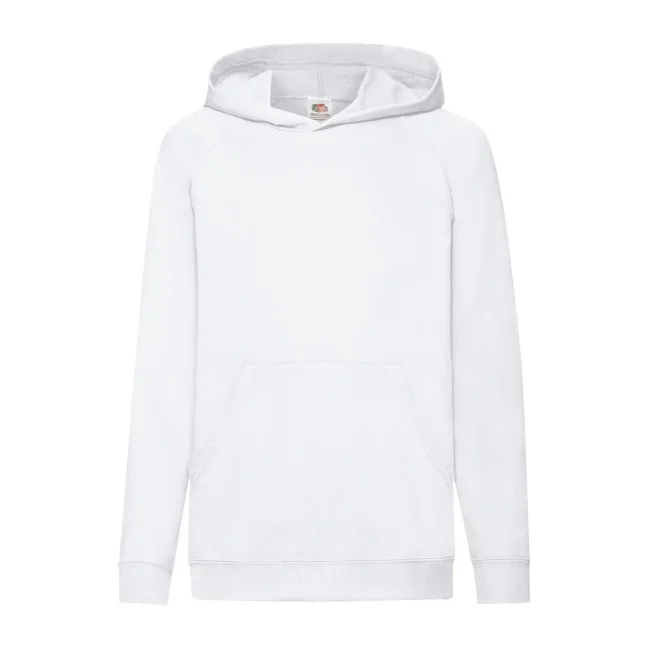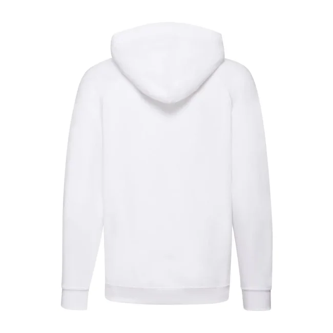 80% cotone Filato Belcoro, 20% poliestere. Felpa leggera sgarzata, maniche raglan, orlo inferiore e polsini in costina cotone/Lycra, cappuccio a doppio strato senza cordoncino, tasca frontale a marsupio. Struttura tubolare. Etichetta removibile.