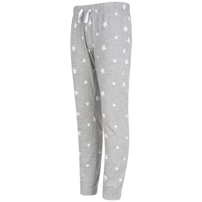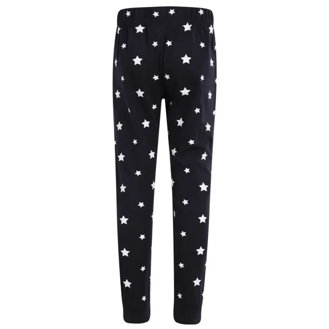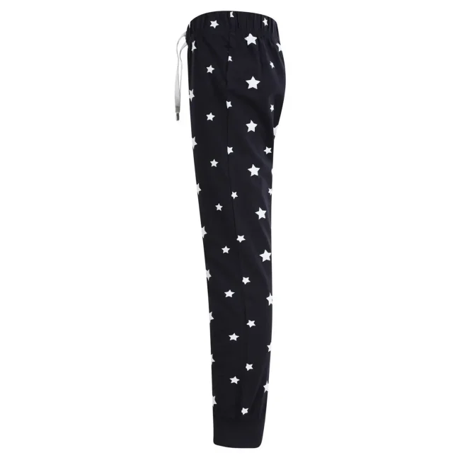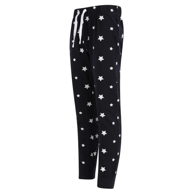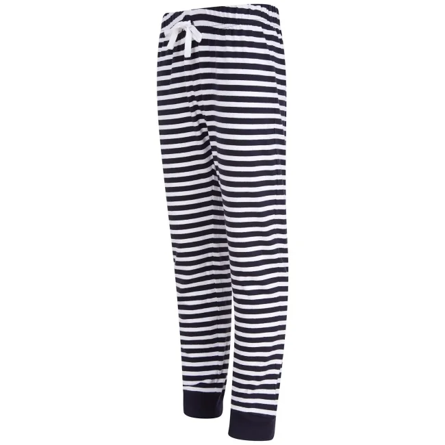 96% cotone, 4% elastan. Pantaloni da donna single jersey con vita elasticizzata e cordini finti, orlo con polsino, tasche laterali, etichetta strappabile.