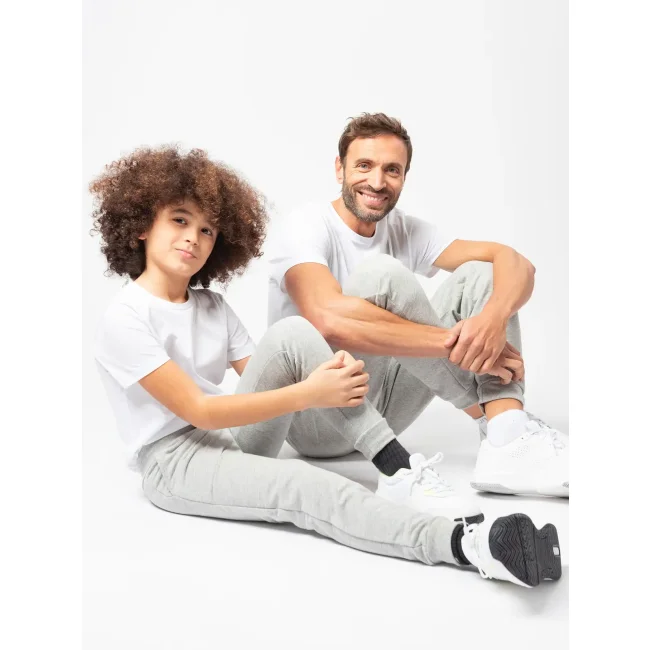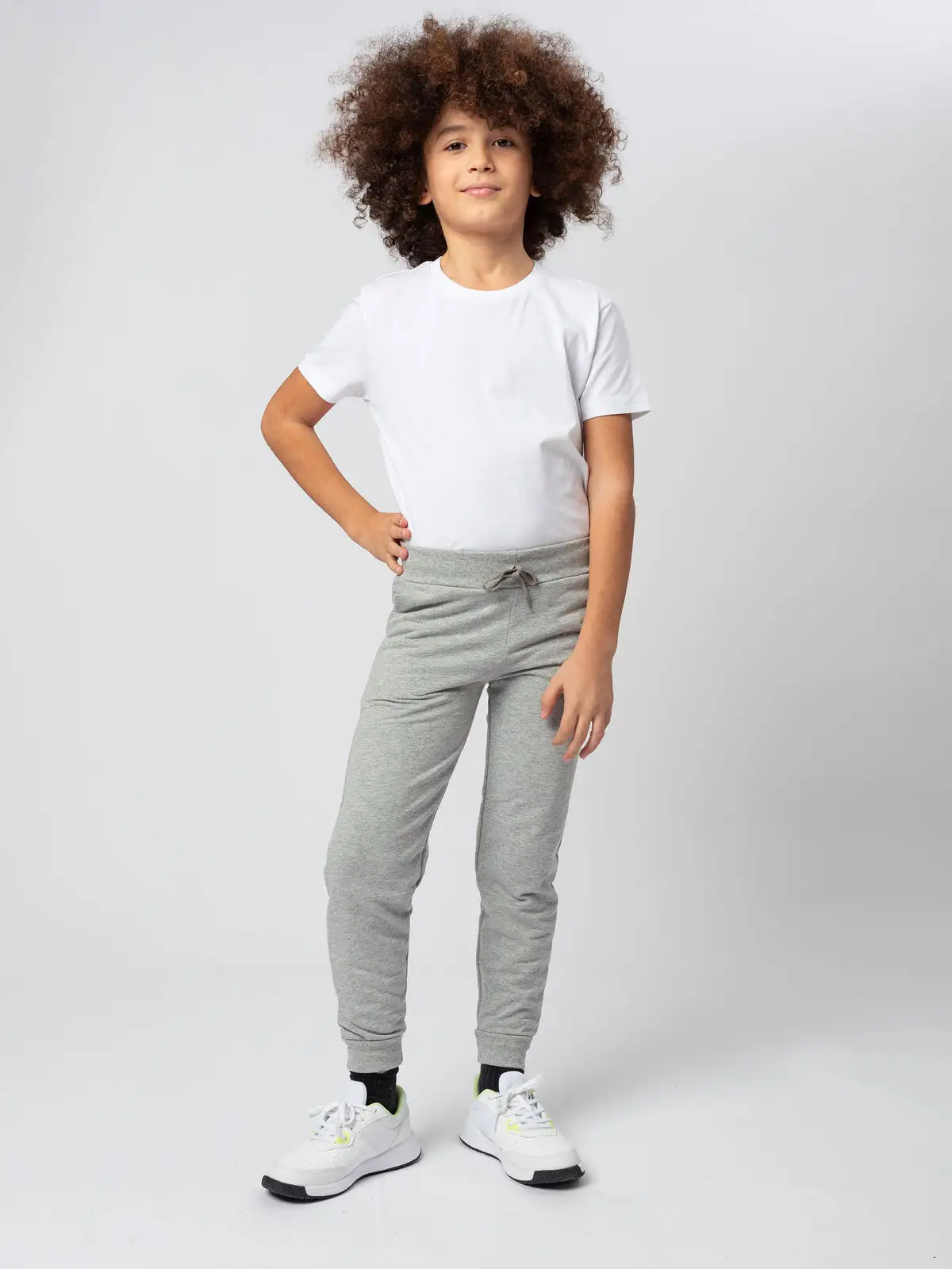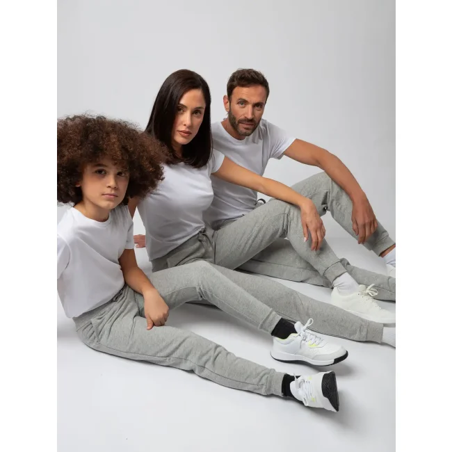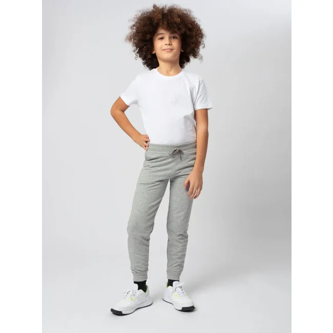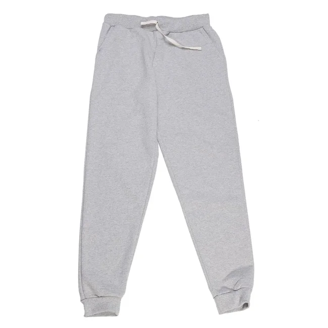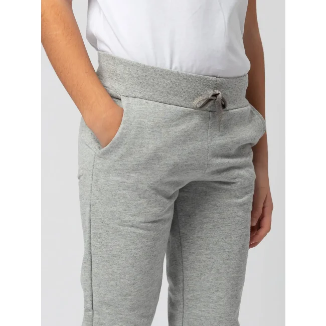 80% cotone, 20% poliestere. Pantaloni bambino con polsini alle caviglie, non felpati internamente. Tasche laterali, elastico in vita con cordoncino tono su tono.
