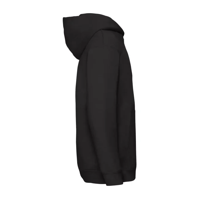 70% cotone, 30% poliestere. Felpa con maniche set-in, cappuccio a doppio strato senza cordino, tasca frontale a marsupio, felpata internamente, struttura con cuciture laterali, polsini e orlo inferiore in cotone/elastan. (Col. 30/94: 260 g/m²).