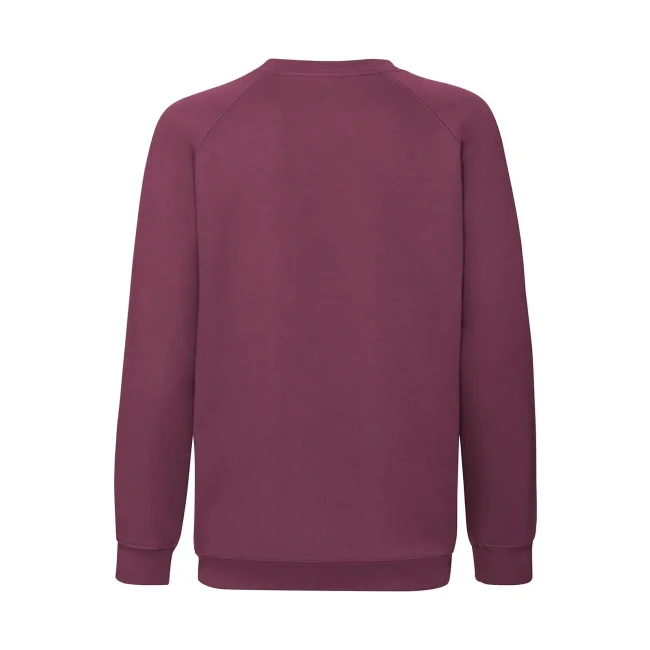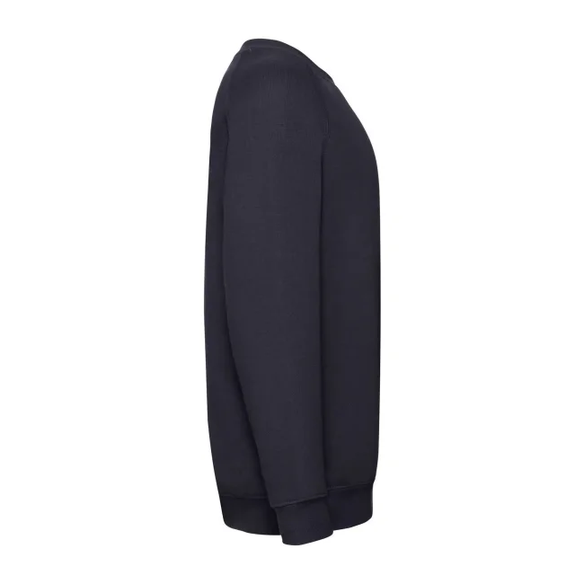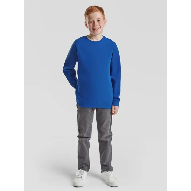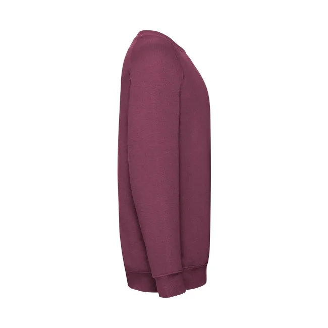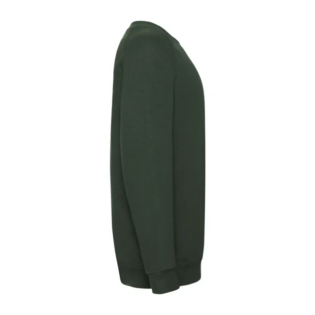 70% cotone, 30% poliestere. Felpa con maniche raglan, collo in costina cotone/lycra, fettuccia interna tono su tono, felpata internamente, struttura con cuciture laterali. (Col. 94: 260 g/m²).