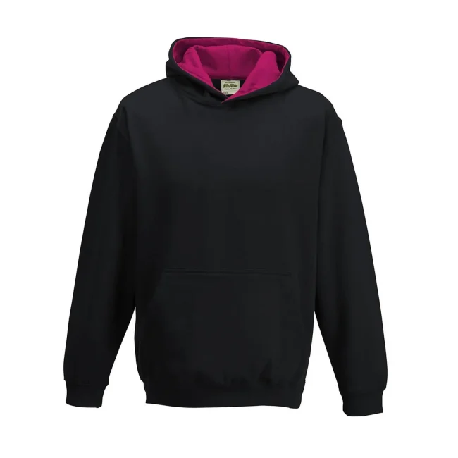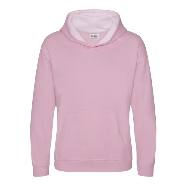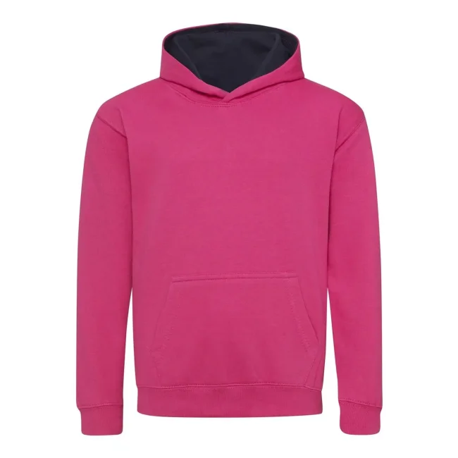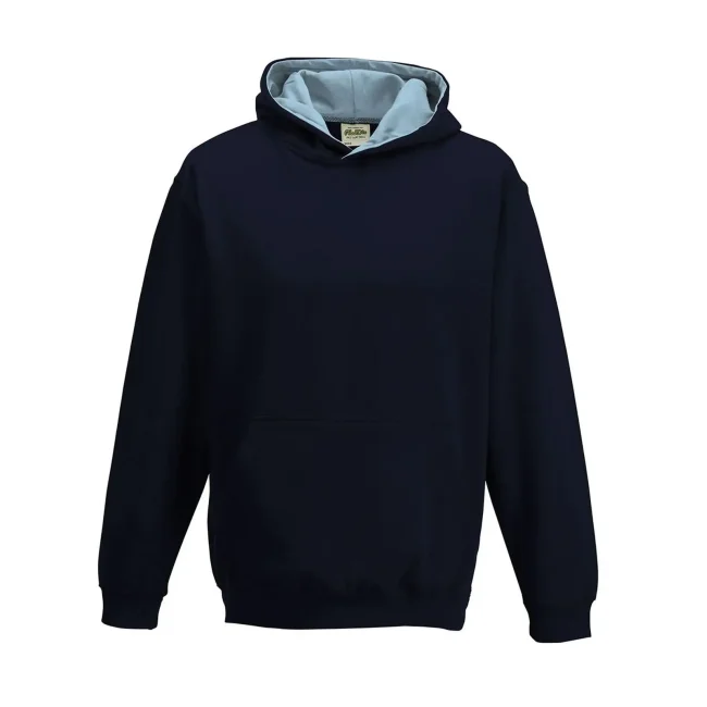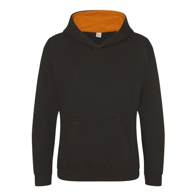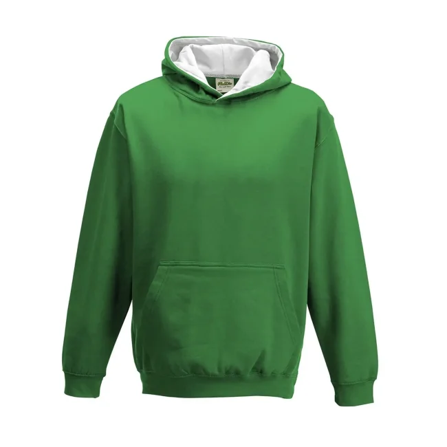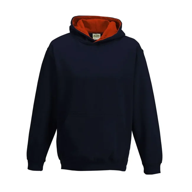 80% cotone, 20% poliestere. Felpa con maniche set-in, cappuccio a doppio strato con parte interna di colore contrastante, senza cordoncino, tasca anteriore a marsupio, polsini e orlo inferiore in costina, felpata internamente, struttura con cuciture laterali.
