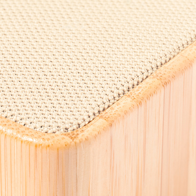 Cassa wireless con connessione Bluetooth® e potenza di 3W. Con alloggiamento in bambù naturale in combinazione con la copertura superiore in cotone. Dimensioni compatte e pratica maniglia di trasporto in cotone. Batteria al litio da 300 mAh, con cavo di ricarica di tipo C incluso. Presentata in una scatola individuale dal design kraft. Manuale di istruzioni disponibile in inglese e spagnolo.Materiali come il bambù favoriscono l'utilizzo di materie prime naturali, riducendo le emissioni inquinanti. Proviene da una pianta di grande resistenza, versatilità di crescita e rapida rigenerazione, rappresentando un'ottima alternativa all'uso del legno tradizionale.