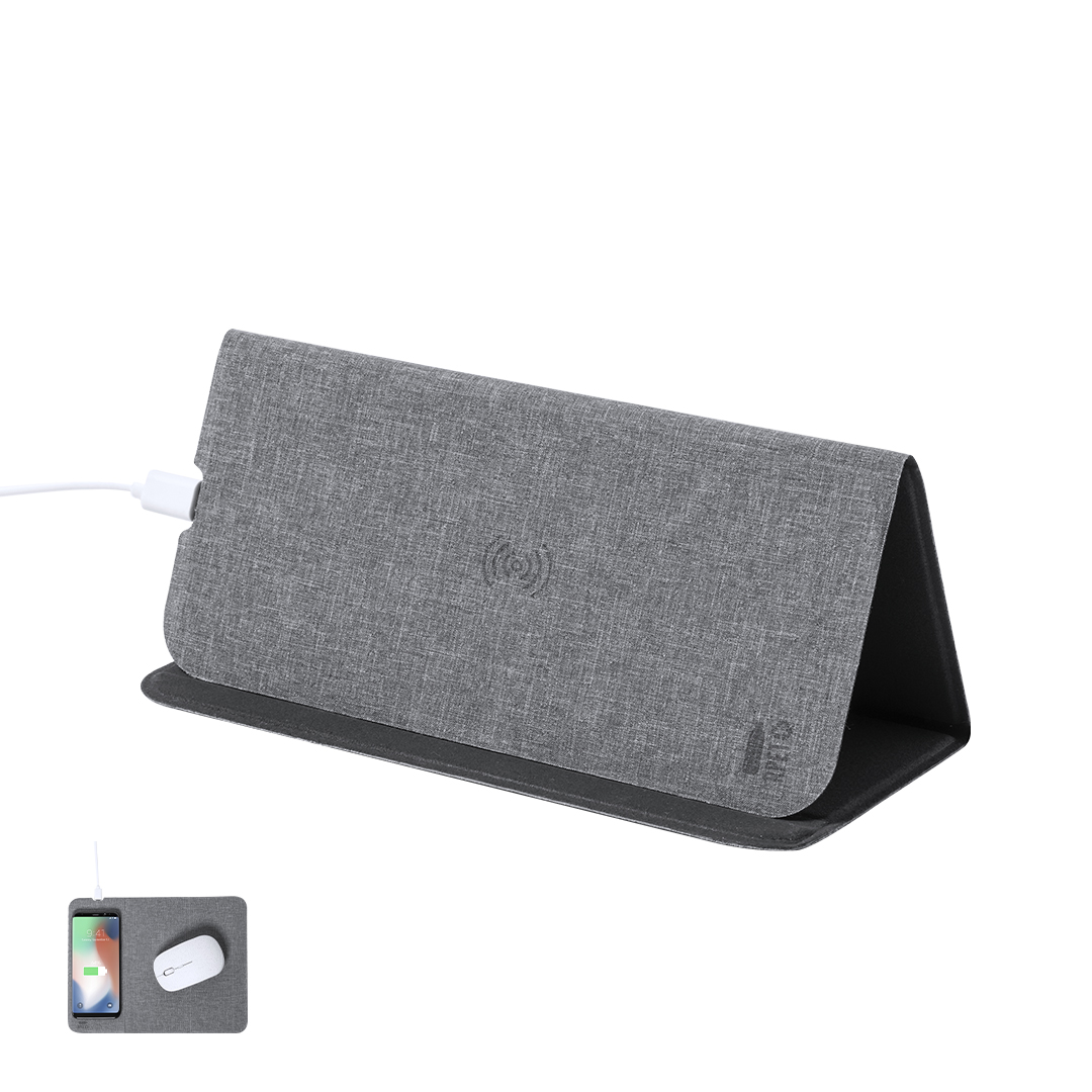 Tappetino mouse pieghevole della linea natura, prodotto con una combinazione di PU scamosciata e poliestere RPET, realizzato con plastica riciclata per promuovere il riutilizzo dei rifiuti plastici e aiutare la sostenibilità del pianeta. Con caricatore wireless integrato da 10W -Cavo tipo C incluso-. Base antiscivolo e supporto multiposizione per smartphone. Compatibile con i dispositivi dotati di tecnologia di ricarica wireless e confezionato in un'attraente scatola dal design ecologico. Manuale d'istruzioni disponibile in inglese e spagnolo. Marchio RPET sull'articolo.Nel rispetto dei requisiti di sicurezza:Sistema di protezione dal surriscaldamento.Sistema di protezione da sovraccarico.Sistema di bloccaggio per evitare cortocircuiti