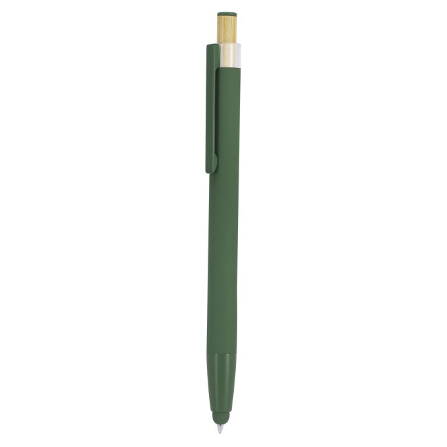 Penna touch realizzata in alluminio riciclato. Corpo con finitura gommata. Progettata con pulsante in bambù e dettaglio superiore coordinato con il colore del corpo e clip metallica abbinata. Meccanismo a pressione. Include distintivo in alluminio riciclato. Lalluminio riciclato è un materiale con possibilità di riciclo quasi infinite, senza perdere le sue proprietà originali e consumando meno energia in questo processo. La certificazione GRS (Global Recycled Standard) garantisce lorigine riciclata del materiale utilizzato per la fabbricazione del prodotto. Materiali come il bambù favoriscono lutilizzo di materie prime naturali riducendo le emissioni inquinanti. Inoltre, il bambù proviene da una pianta molto resistente e versatile, con crescita e rigenerazione rapida, rappresentando uneccellente alternativa alluso del legno tradizionale.
