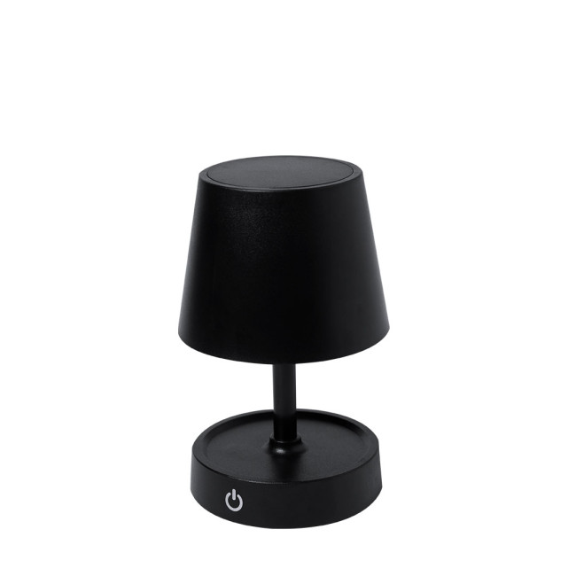 Lampada di design con finitura nera opaca. Include sistema di regolazione dell'intensità luminosa touch e corpo pieghevole per regolarne l'altezza. Equipaggiata con batteria ricaricabile da 800mAh tramite USB Tipo C -cavo incluso- e 12 LED di luce calda. Con pulsante accensione/spegnimento nella parte posteriore.