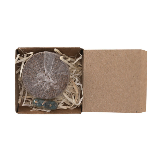 Kit piantabile composto da capsule di semi e pastiglia di substrato, presentato in un astuccio in cartone riciclato. Include istruzioni per la semina di fiori selvatici, rendendolo un'ottima scelta per gli amanti della natura.