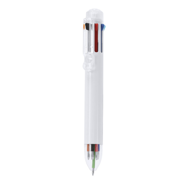 Penna con 8 diversi colori di scrittura in ABS. Questo strumento di scrittura offre una vasta gamma di colori in un'unica penna, con una scelta di 8 colori diversi per adattarsi a qualsiasi compito. Il suo design ergonomico e la sua funzionalità consentono di selezionare facilmente ogni opzione grazie ai pulsanti sulla parte superiore. Progettata con fusto bianco e clip e accessori trasparenti.