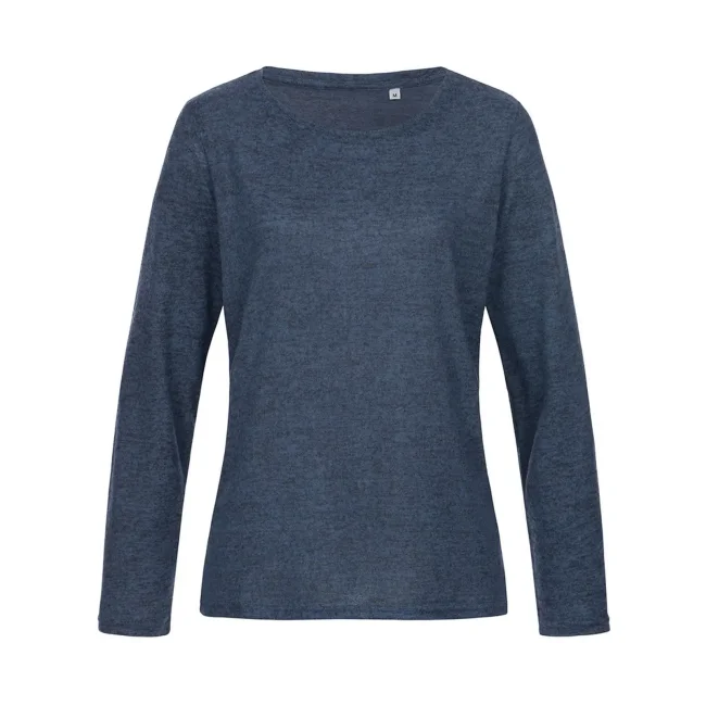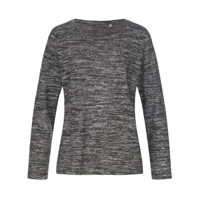 58% poliestere, 37% viscosa, 5% elastane. Pullover manica lunga da donna, cuciture laterali, disponibile in diversi colori melange.