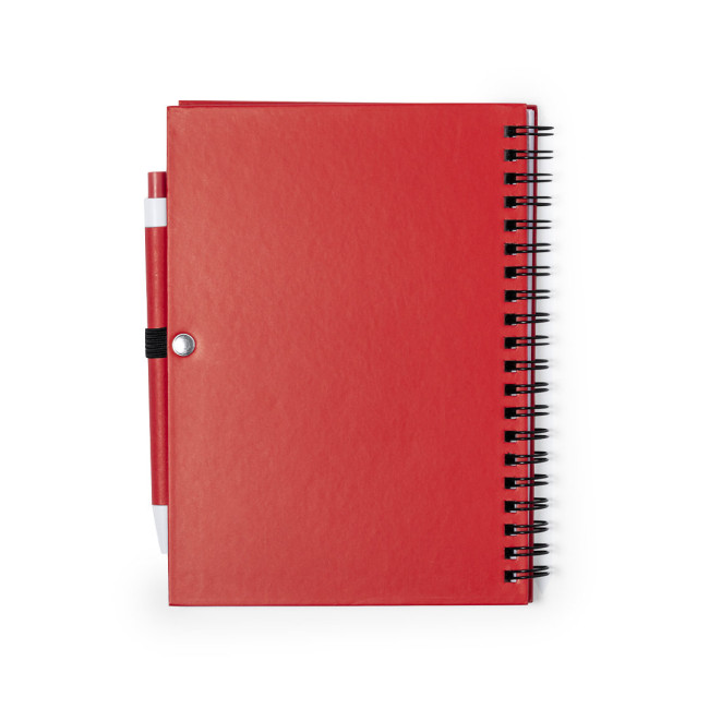 Set di notebook e penna. Notebook ad anelli con copertina morbida al tatto in cartone riciclato e penna abbinata. Contiene 70 pagine lisce con portapenne. Disponibile in una gamma di colori vivaci.