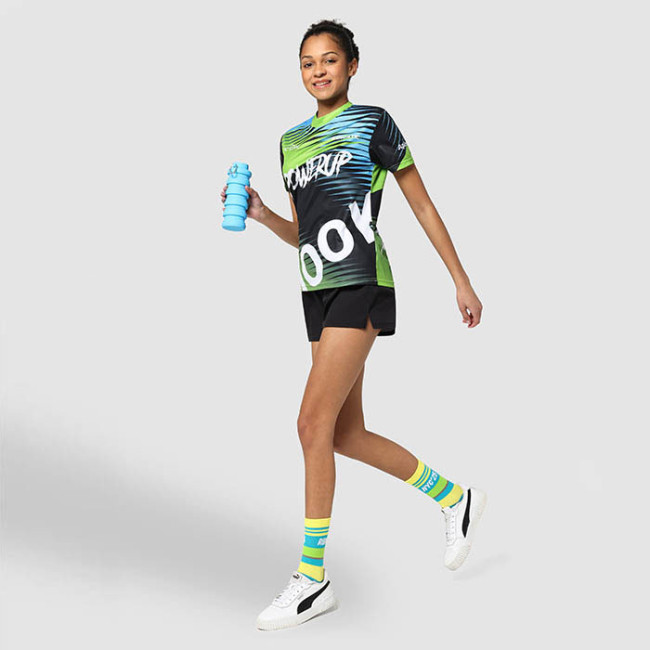 Bottiglia pieghevole in silicone con coperchio in acciaio inox e moschettone in alluminio. Il moschettone non è adatto all'arrampicata (uso non professionale). Capacità: 500 ml.