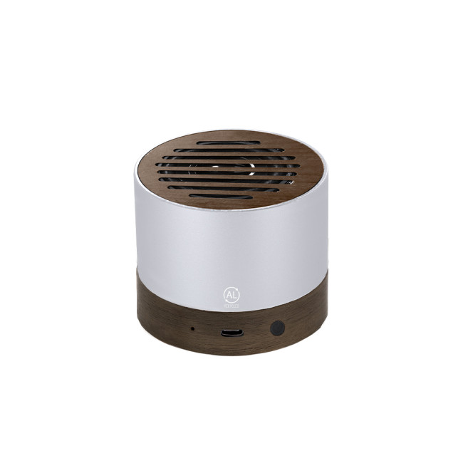 Altoparlante realizzato in alluminio riciclato con legno di noce. Con connessione Bluetooth® 5.3 e potenza di 3W. Include distintivo Alluminio Riciclato nella scocca. L'alluminio riciclato è un materiale con possibilità di riciclo quasi infinite, senza perdere le sue proprietà originali e consumando meno energia in questo processo.Realizzato con elementi vegetali per favorire l'uso di materie prime naturali e ridurre le emissioni inquinanti.Certificazione GRS (Global Recycled Standard / Standard di Riciclo Globale), che garantisce l'origine riciclata del materiale utilizzato per fabbricare il prodotto.