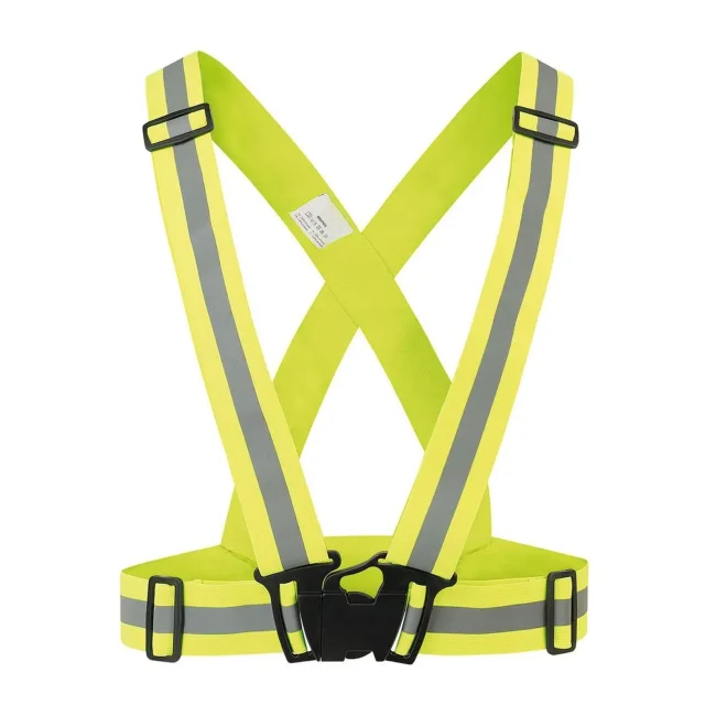 100% poliestere. Imbragatura da petto riflettente ed elastica, per attività all'aperto: jogging, trekking, ciclismo, taglia regolabile sul busto, chiusura a clip sul davanti, in aggiunta due bande riflettenti per braccia o gambe (chiusura in velcro).