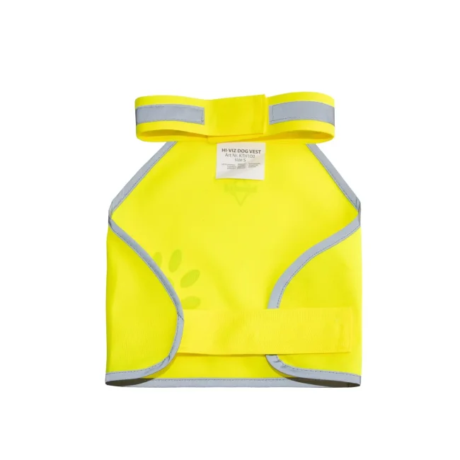 100% poliestere. Gilet di sicurezza ad alta visibilità per cani, regolabile tramite chiusura in velcro su collo e ventre, idonea a cani di piccola e media taglia, imbustato singolarmente. Circonferenze: S: collo 45 cm - ventre: 40 cm, M: collo 50 cm - ventre 52 cm - L: collo 62 cm - ventre 65 cm.
