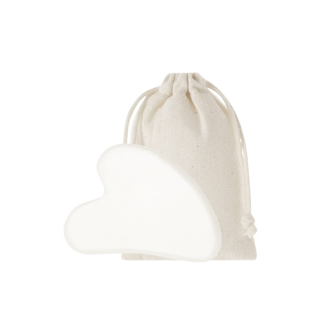 Massaggiatore facciale realizzato in pietra jade bianca. È ideale per completare le routine di cura del viso. Presentato in borsa di cotone naturale.
