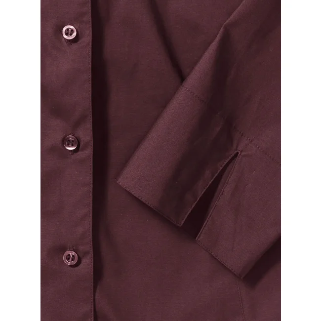 97% cotone, 3% elastane. Camicia elegante, colletto semiaperto con bottone singolo perlato, orlo stondato. Manica 3/4 con spacchetto e risvolto. Pince dietro e davanti al seno per una vestibilità femminile. Bottone di riserva.