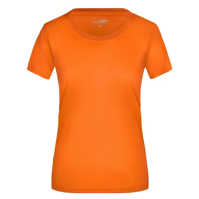 100% poliestere. T-shirt per il tempo libero e lo sport. Fine single jersey, forma diritta, necktape, cuciture a doppio ago sulle spalle, collo e maniche. Traspirante, regola l'umidità, ad asciugatura rapida. Tessuto esterno (150 g/m²). Manica corta, collo rotondo, taglio sciancrato, taglia donne 3XL.