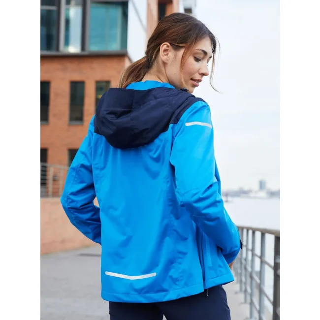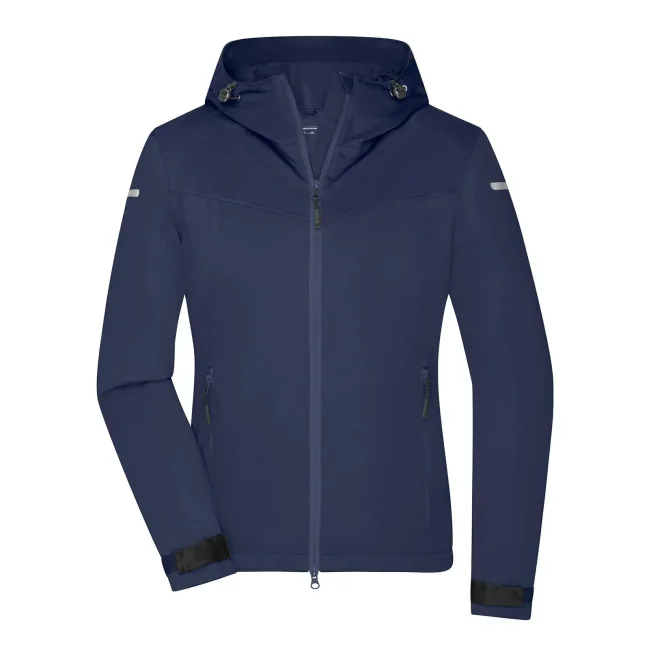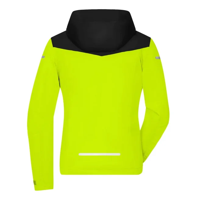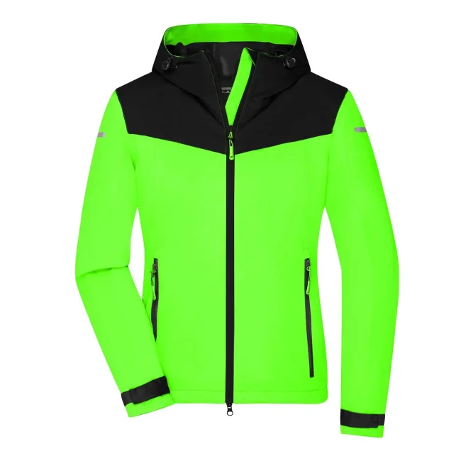 100% poliestere riciclato. Giacca softshell 2 strati foderata in poliestere riciclato con membrana TPU, antivento e antipioggia (10,000 mm colonna d'acqua), traspirante e permeabile al vapore (5,000/m²/24 h). Cuciture nastrate, cerniere waterproof, zip nascosta bidirezionale con protezione per il mento, due tasche laterali, una tasca interna, cappuccio regolabile, polsini regolabili con velcro, vestibilità ergonomica, retro esteso, dettagli riflettenti sulle maniche e nella parte posteriore, zip decorativa sul retro. Taglio leggermente sagomato.