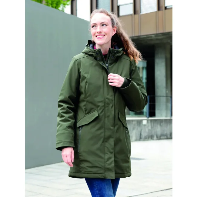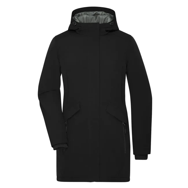 96% poliestere riciclato, 4% elastene. Tessuto esterno: 96% poliestere riciclato, 4% elastan. Strato interno: 100% poliestere riciclato. Imbottitura: 100% poliestere. Parka imbottito con cappuccio, tessuto esterno antivento e antipioggia (5,000 mm colonna d'acqua), traspirante e permeabile al vapore (2,000/m²/24 h), imbottitura DuPont™ Sorona®. Cappuccio imbottito regolabile, cordino elastico regolabile in vita, zip interna bidirezionale, pattina con bottoni automatici, 6 tasche frontali, due tasche con zip, tasca interna con zip, polsini elastici all'interno, zip decorativa sul retro.