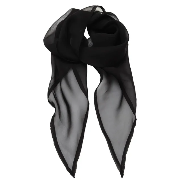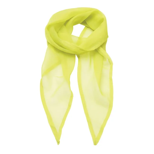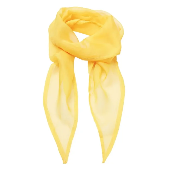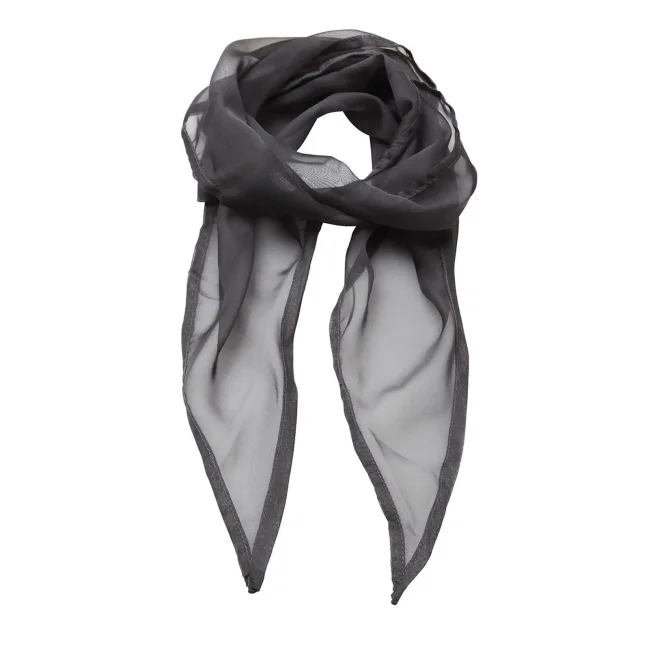 100% poliestere. Foulard multiuso in tessuto chiffon, disponibile in molti colori, larghezza 16.5 cm, lunghezza 98 cm, lavabile a mano.