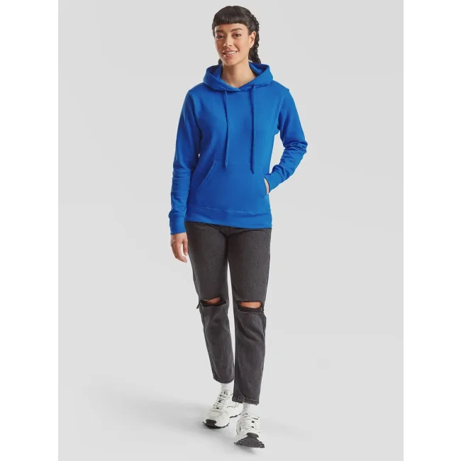 80% cotone filato Belcoro, 20% poliestere. Felpa con cappuccio doppio con cordoncino in tinta, tasca anteriore a marsupio, maniche set-in, orlo inferiore in costina cotone/Lycra. Felpata internamente, struttura con cuciture laterali. Etichetta removibile. (Col. 30/94: 260 g/mยฒ).