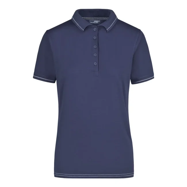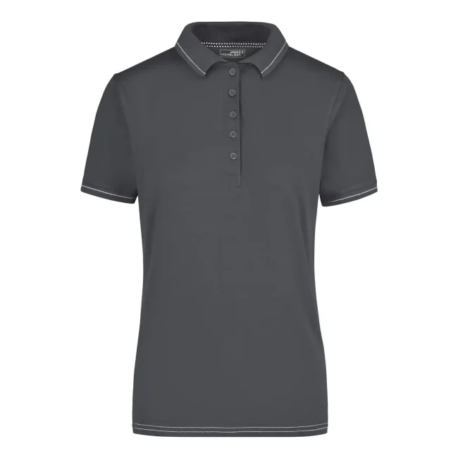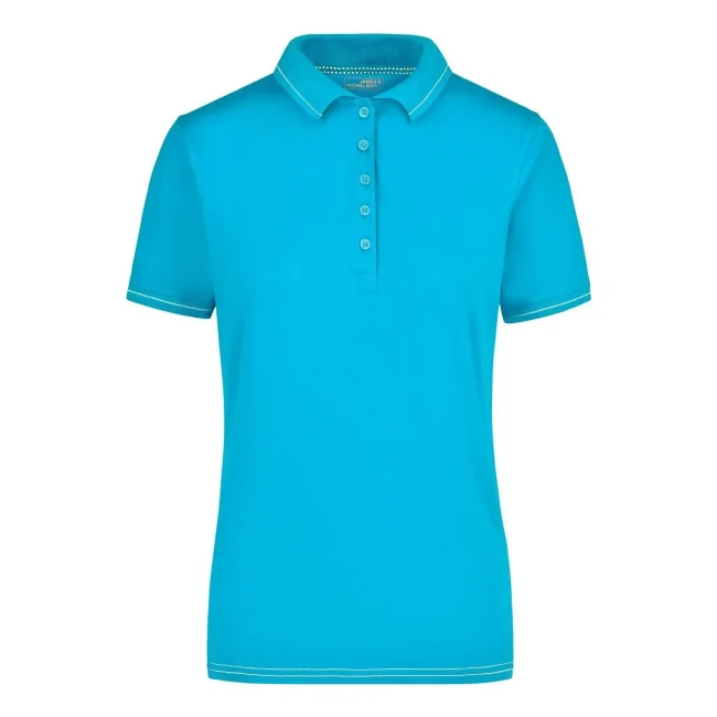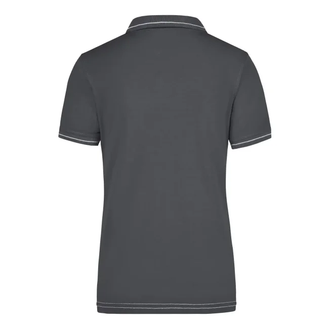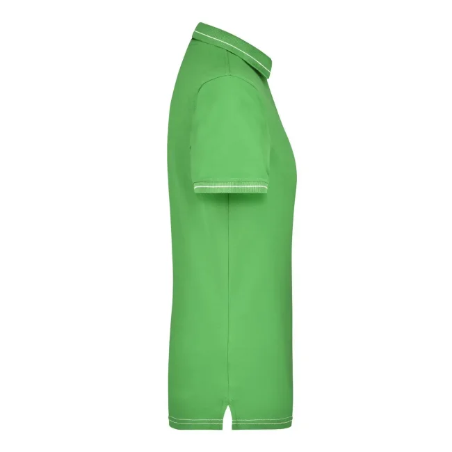 95% cotone, 5% elastan. Polo di alta qualità con righe a contrasto Morbido jersey elastico, Collo della polo in maglia e bande sulle maniche a contrasto, Nastro al collo, spacchi laterali. Bottoni in tono su tono, Leggermente avvitata, stretta, lunga distanza tra i 5 bottoni , Tessuto esterno (170 g/m²).