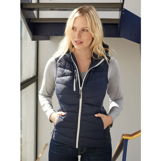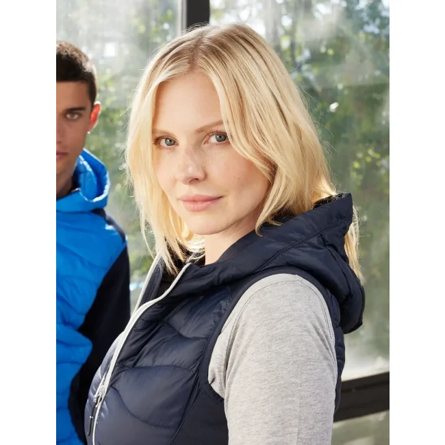 100% poliammide. Giacca sportiva senza maniche da donna in pile elasticizzato e trapuntato, imbottitura antifreddo sorona®AURA, zip a tutta lunghezza con protezione per il mento, tasca laterale e taschino con zip, 2 tasche interne, zip: YKK