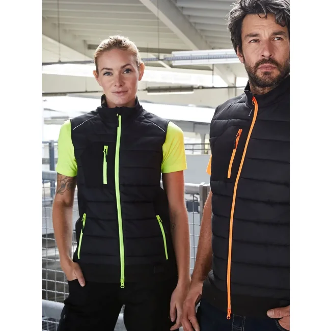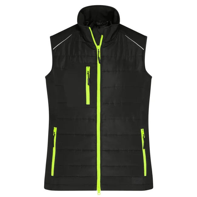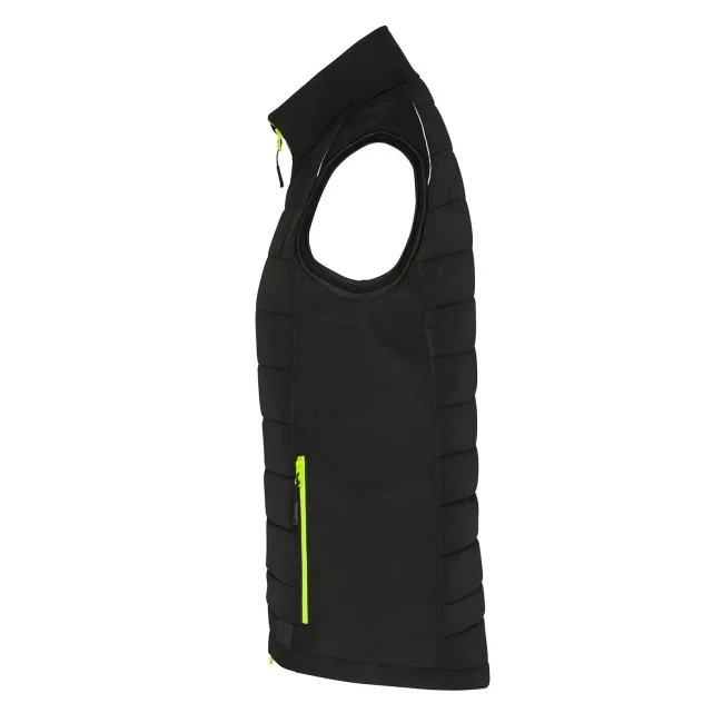 100% poliestere riciclato. Rivestimento: 100% pol. ric. Imbottitura: 100% pol. Gilet softshell a due strati, idrorepellente e antimacchia grazie al BIONIC FINISH ECO, imbottitura Warming DuPont Sorona, colletto alto, tasche laterali e tasca sul petto con zip, tasca interna, dettagli riflettenti. Zip YKK, leggermente sciancrata.