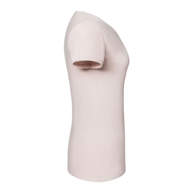 100% cotone filato ad anelli morbido al tatto. T-shirt maniche corte, girocollo in costina cot./lycra con cucitura a doppio ago, nastro di rinforzo da spalla a spalla dello stesso tessuto, leggermente sfiancata, struttura con cuciture laterali, lavabile a 60ยฐ. Col. 94: 97% cot. 3% pol. (Col. 30: 190 g/mยฒ).