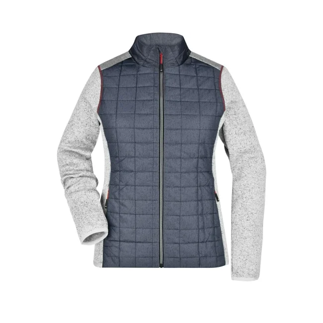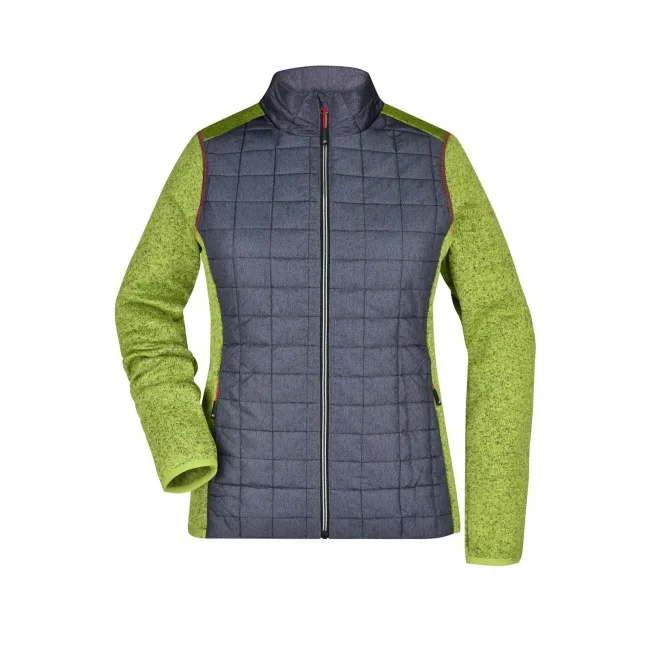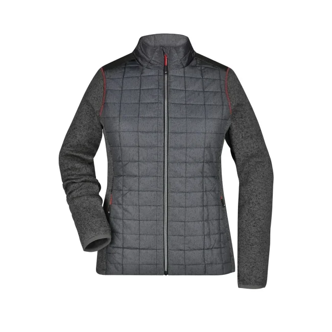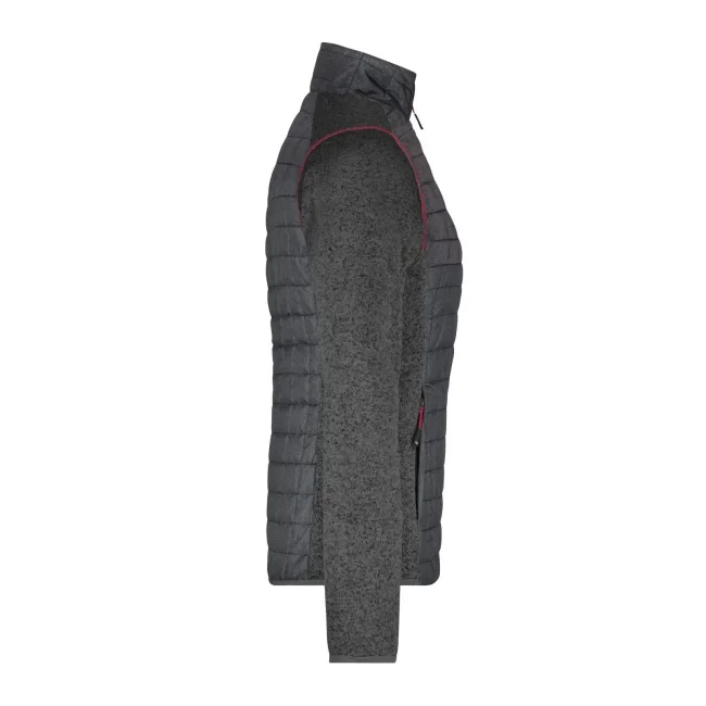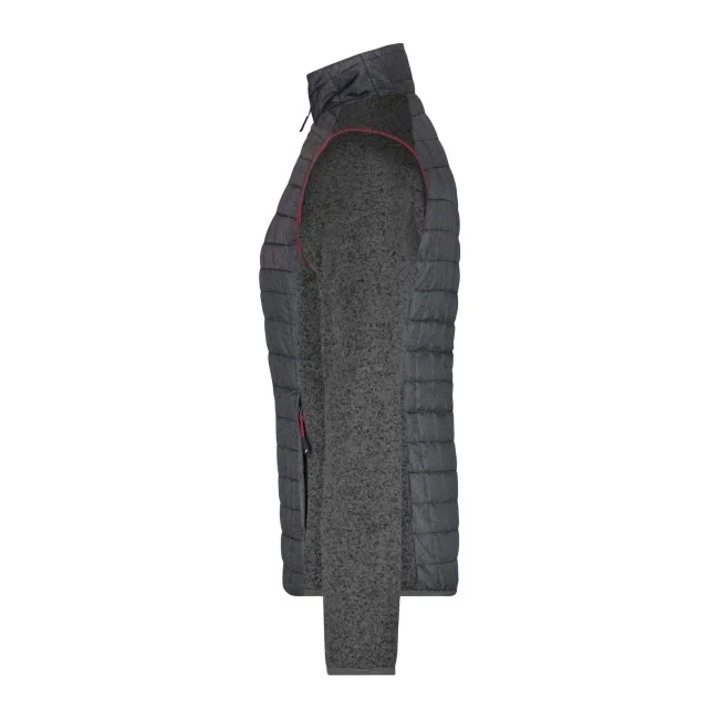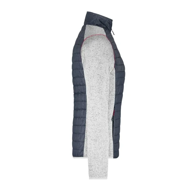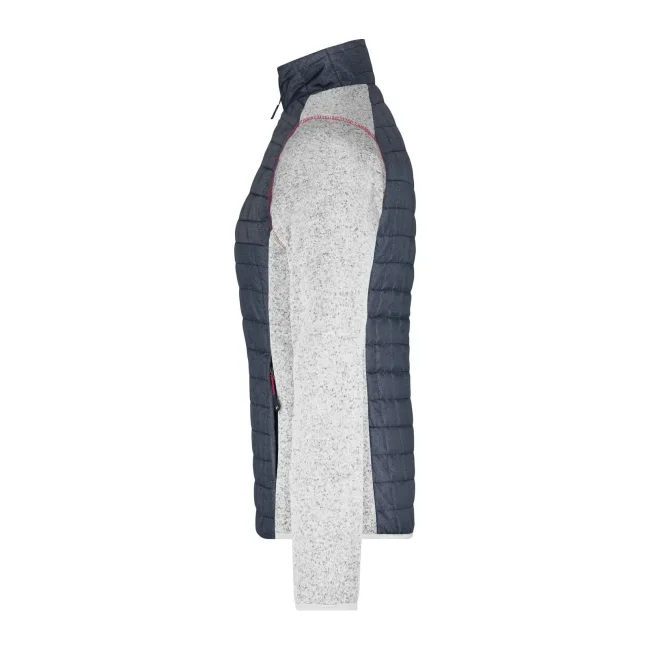 100% poliestere. Rivestimento: 100% poliammide. Imbottitura: 100% poliestere. Giacca in pile mélange, morbida e calda, easy-care, trapuntata su fronte, retro e colletto, cuciture piatte a contrasto sulle spalle, 2 tasche laterali con zip, 2 tasche interne, leggermente sciancrata.