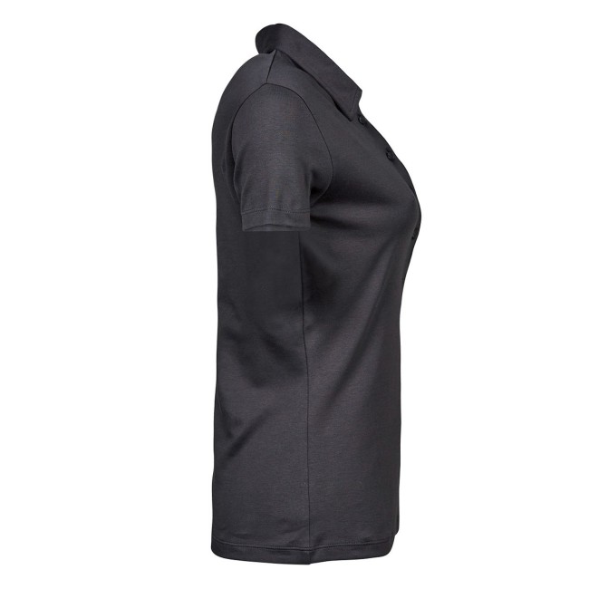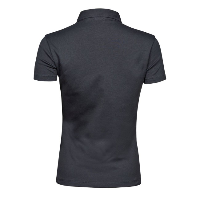 100% cotone pima ring-spun. Polo a maniche corte set-in, 5 bottoni perlati color antracite, colletto dello stesso tessuto, vestibilita' moderna, nastro di rinforzo alle spalle, trattamento agli enzimi, leggermente sfiancata, struttura con cuciture laterali.