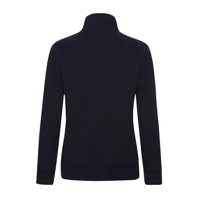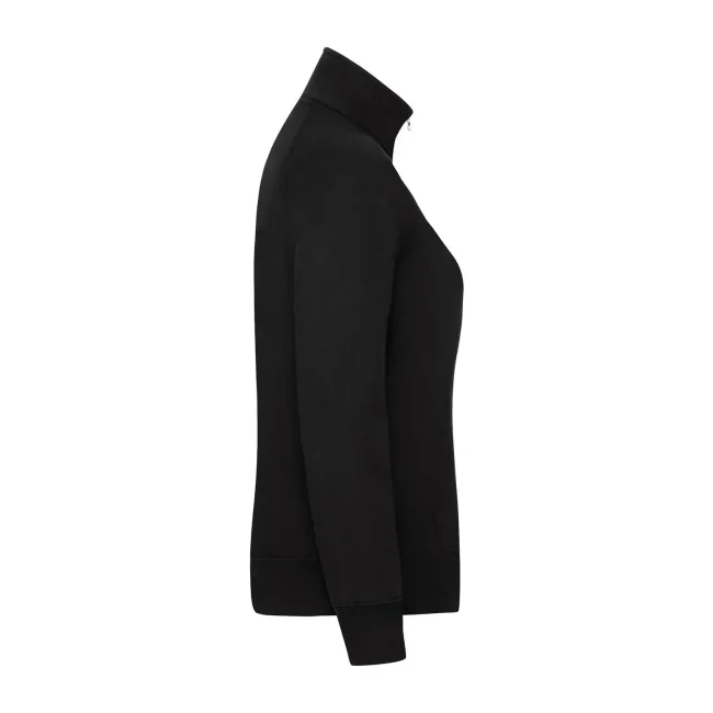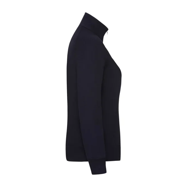 70% cotone 30% poliestere. Felpa con maniche raglan, due tasche frontali, felpata internamente, struttura con cuciture laterali, zip intera nascosta. Etichetta removibile.